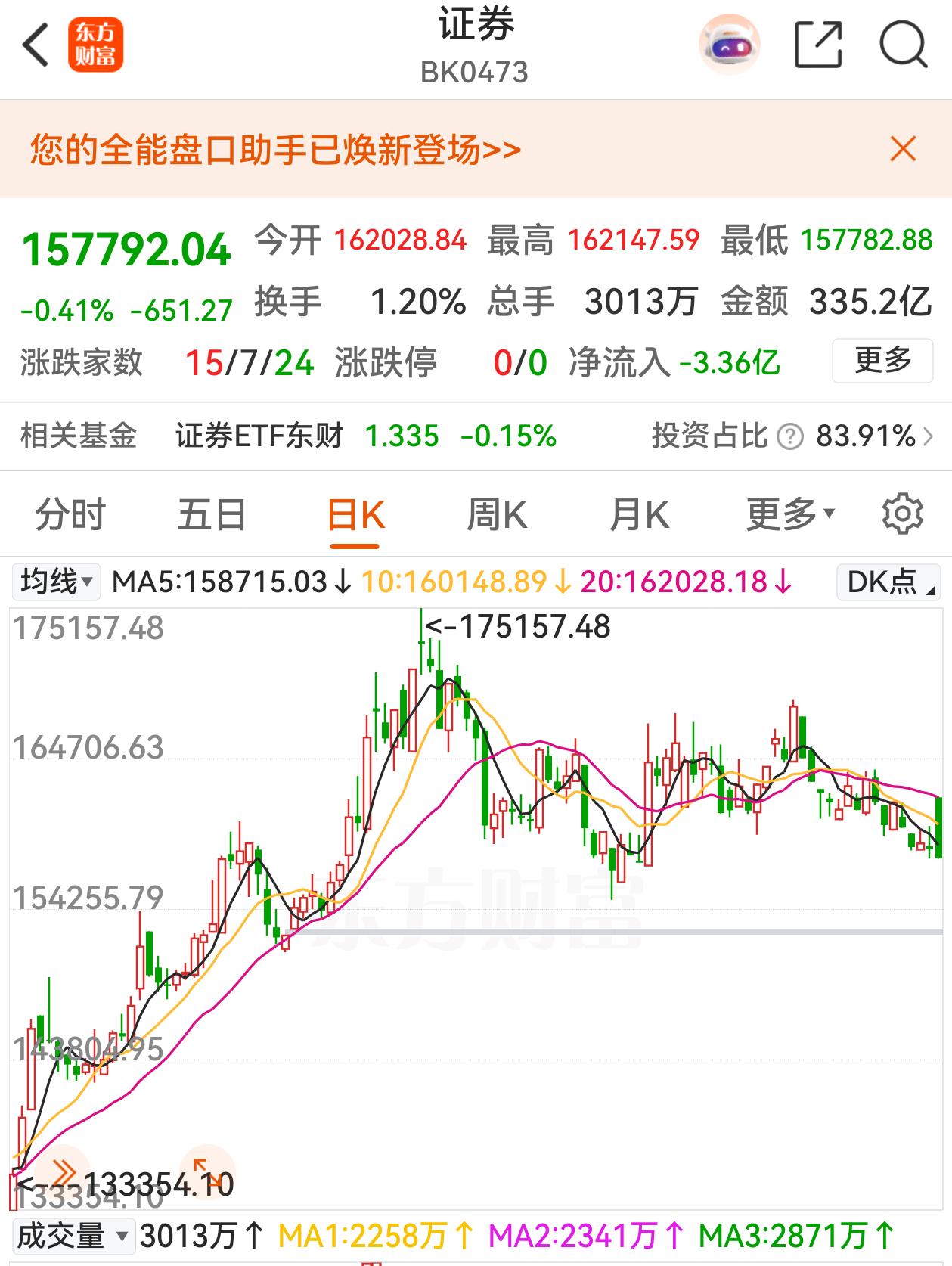 中金公司筹划重组,第四大券商呼之欲出,人们认为会引爆券商行情,毕竟券商股被压制太久了。但结果让人失望,板块高开2.34%,收跌0.41%,又套住了一批券商控。 牛市中证券股受益,这是毫无疑问的,半年报、三季报券商的业绩都证真了,但券商股对业绩暴涨无动于衷,持续其调整趋势。这种背离走势有违逻辑,不少机构认为证券股有估值修复、配置修正的机会,投资者也看好其投资机会,只是等待利好事件的触发。 中金公司换股吸收东兴证券、信达证券,建设一流券商再迈一步,对券商板块是实实在在的利好,今天高开低走,对投资者打击还是很大的。机构低配券商股,散户看好券商股,想要机构来抬轿不太现实,但券商低估低配没有异议,市场迟早会纠错,套在这个位置不可怕,就地卧倒也许是好的选择。