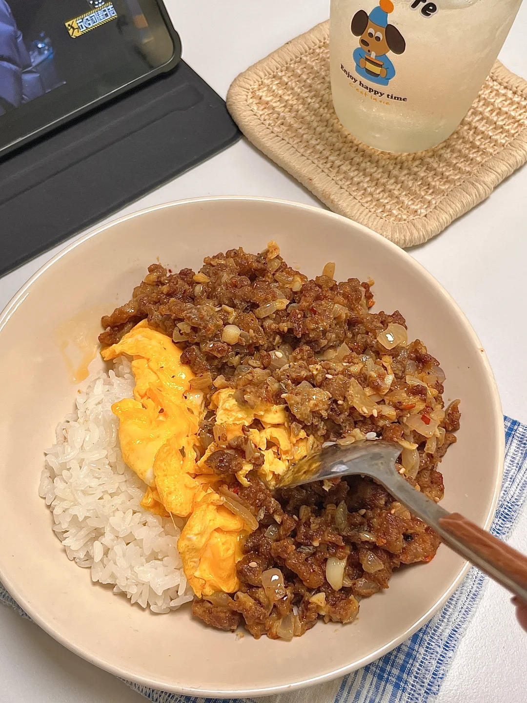🍴今日份一人食: 咖喱肉酱滑蛋饭 椰子水 . 不知道吃什么时就吃椰香咖喱肉酱滑蛋饭🍛简单又好吃😋不会出错哒🥰 肉沫的焦香混着咖喱和椰香,浓郁的汤汁再配上嫩嫩的滑蛋拌一拌巨巨巨下饭🍚爱吃的宝一定要去试试呀✌🏻 . 平常我就爱喝🥥椰子水,家里一直囤的就是这款 因为我家小朋友也爱喝,口感清甜好喝 是天然的补水饮料 简单纯粹的配料~只有椰子水!喝起来更安心~ 天热就适合喝冰凉凉的椰子水🥥