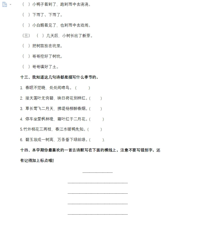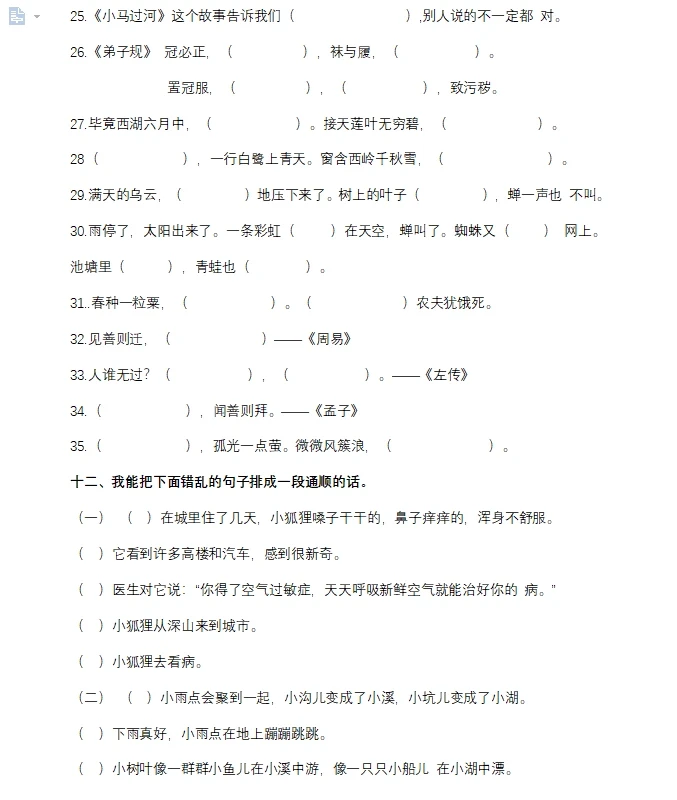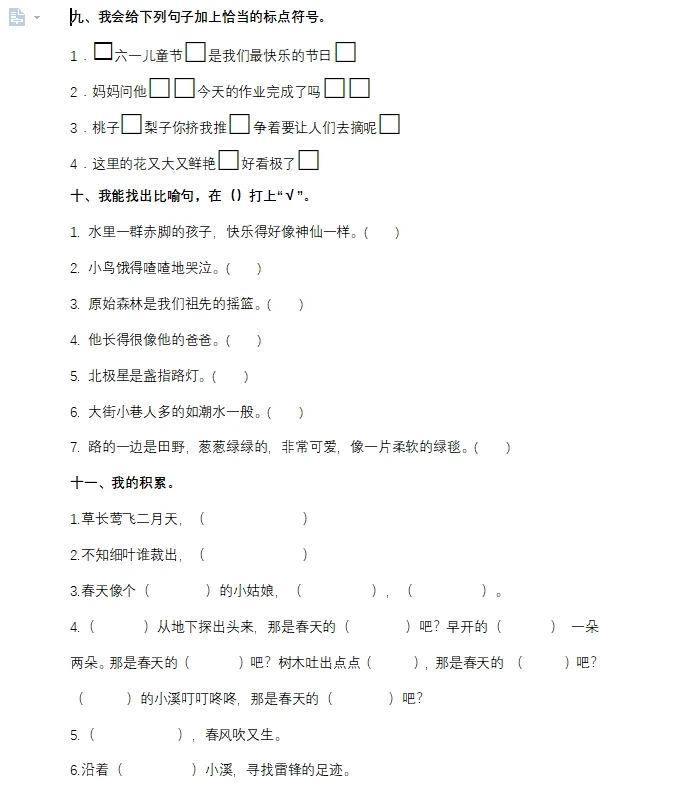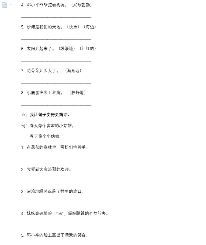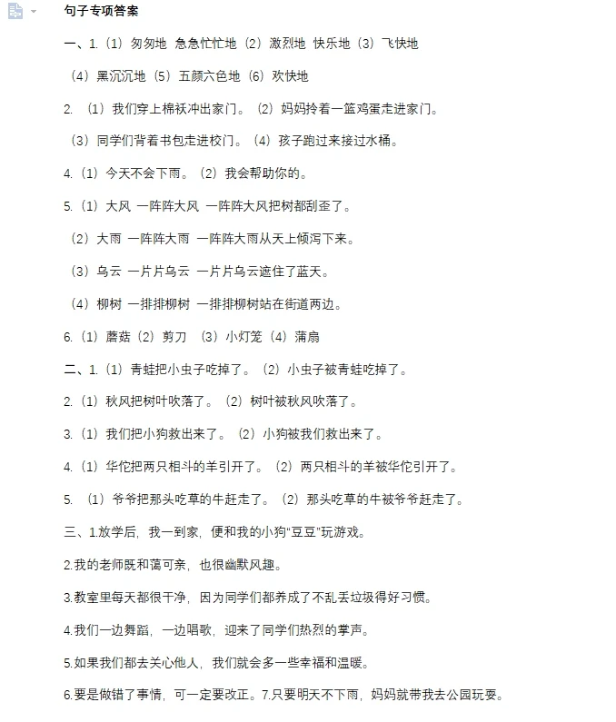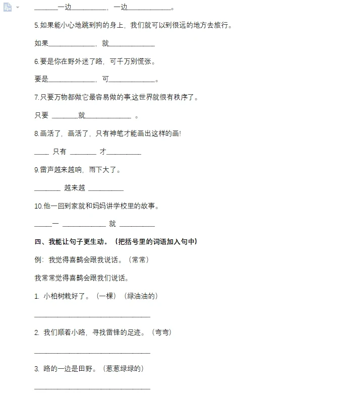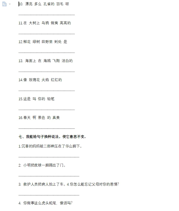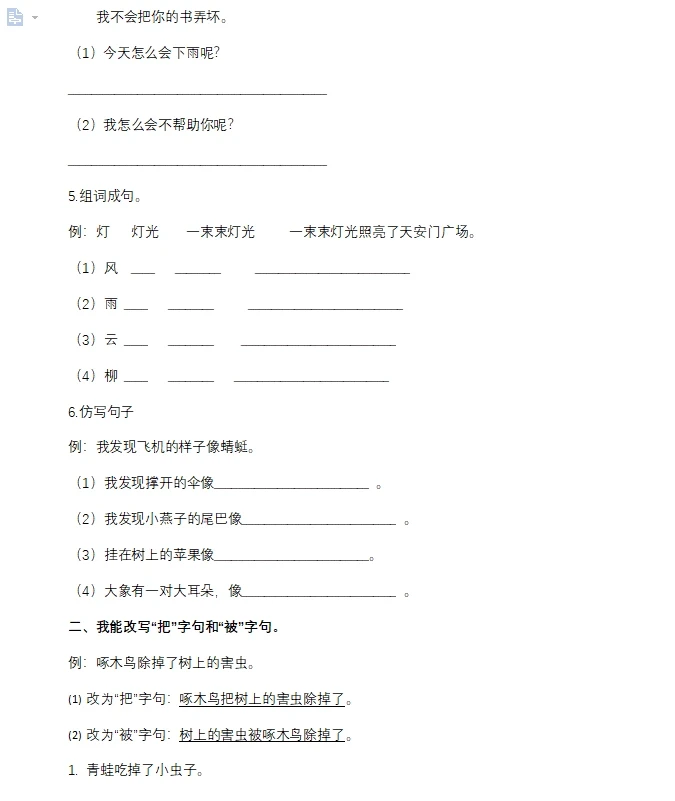 二年级下册语文句子专项练习