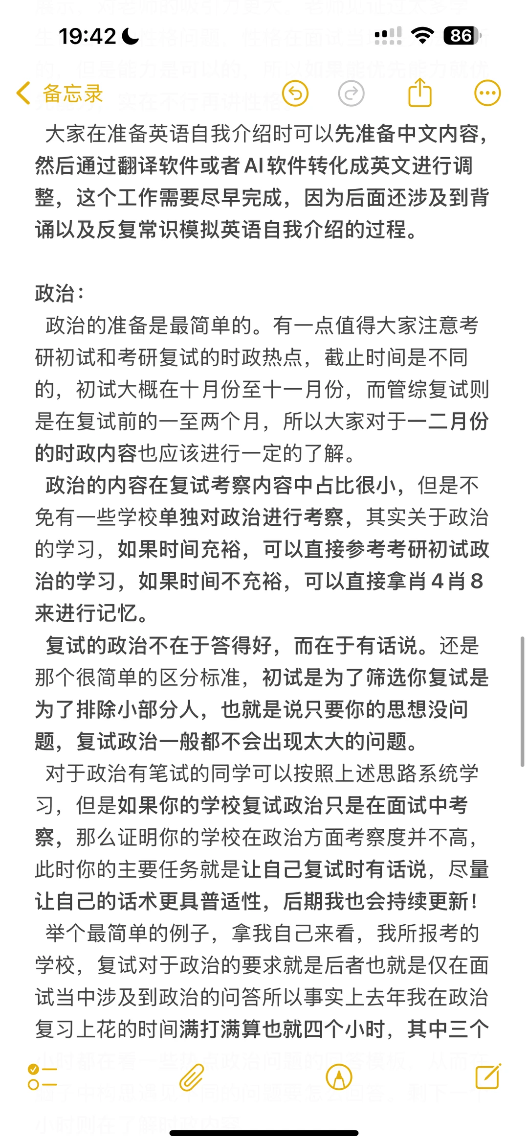 3️⃣政治:单独考笔试的建议按照初试的步骤过一遍,不考笔试的同学简单复习形成答题思路即可(要让自己红彤彤的!)
