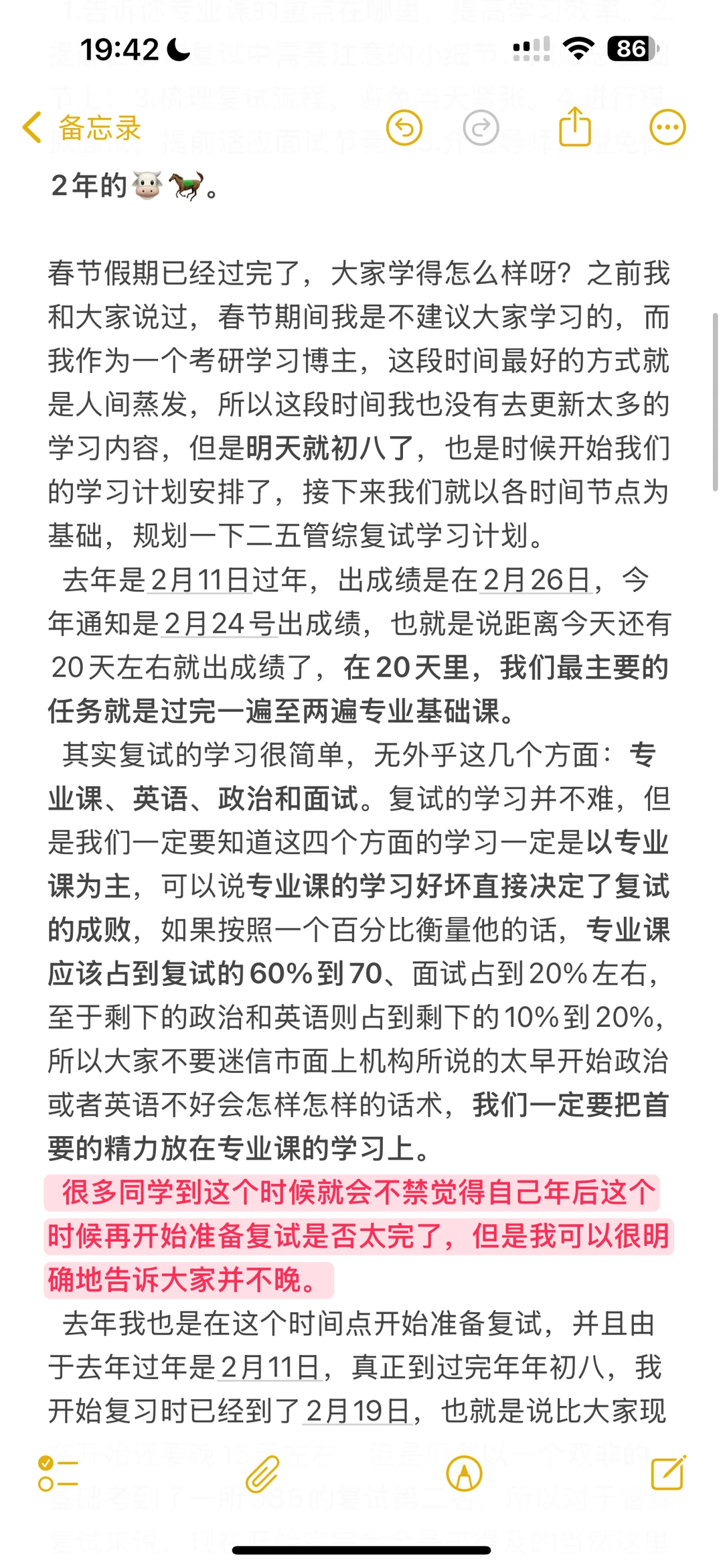 正月初八(2🈷️5号)正式开始学习,2🈷️24号出成绩之前把专业课内容过1-2遍。