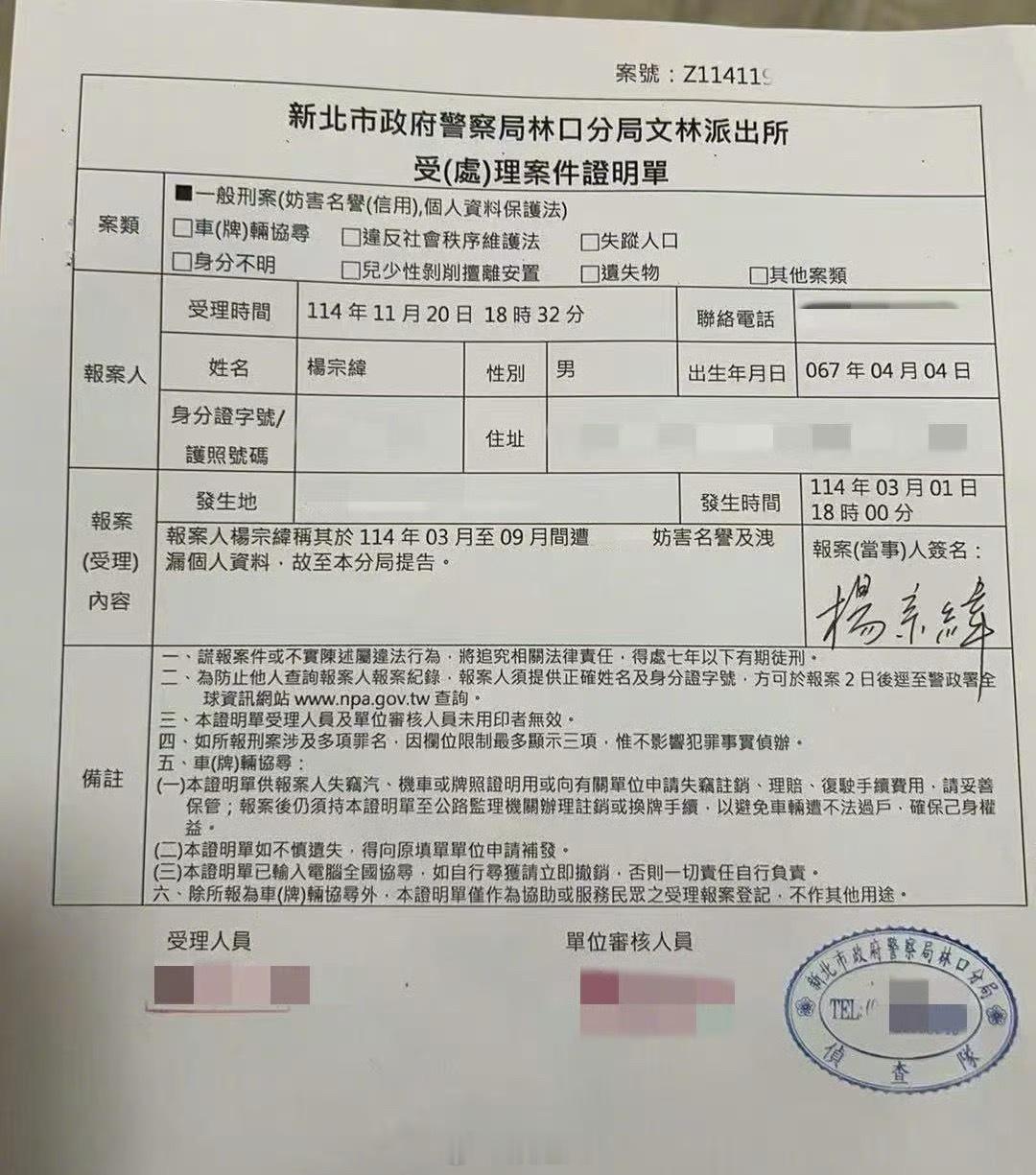杨宗纬报案维权“尊重每个人的选择,相信所有行为都会带来相应的后果。”