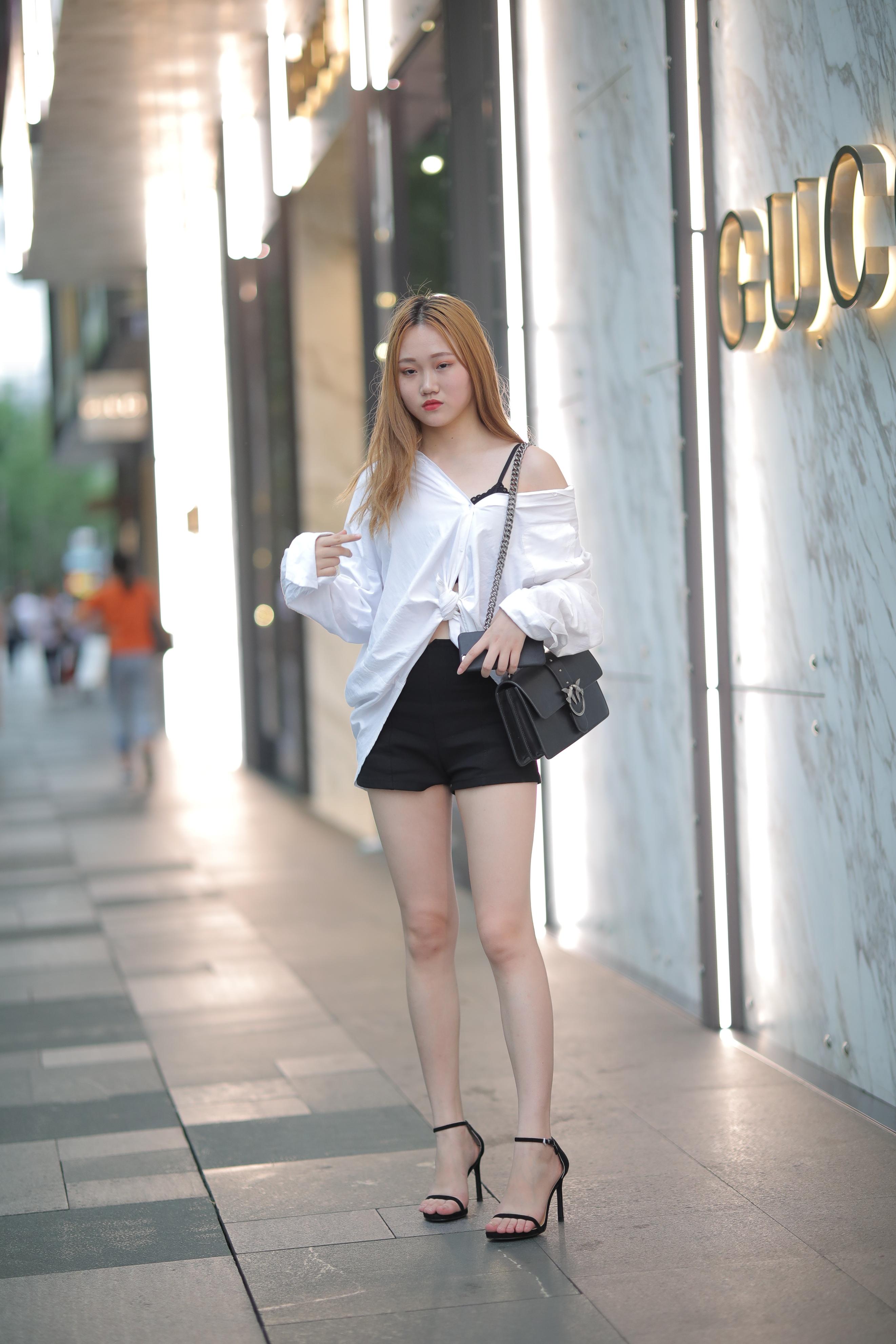 成都街拍黑色热裤高跟美女 无水印原图 素材来自网络 版权归原作者 极...