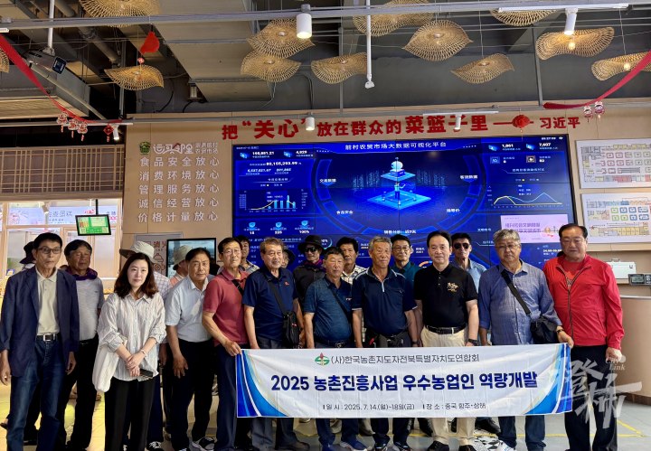 “他们一到菜场,先看到智能大屏,都会感到惊讶。我们每个商户配了智能电子秤,每笔交易都可打印小票,电子秤和智能大屏实时联动,实时更新。韩国客人说,韩国的农贸市场没有这种智能屏。他们看到蔬菜摊品类齐全,价格又便宜,都竖大拇指,会详细问这个菜多少钱一斤,中国老百姓喜欢吃哪些菜。看到新鲜又便宜的水果,他们都很羡慕,看到西瓜都要流口水的,我们这里一只西瓜三四十元,在他们国家折算成人民币要两三百元,每次来的韩国客人都会现场买西瓜品尝。”