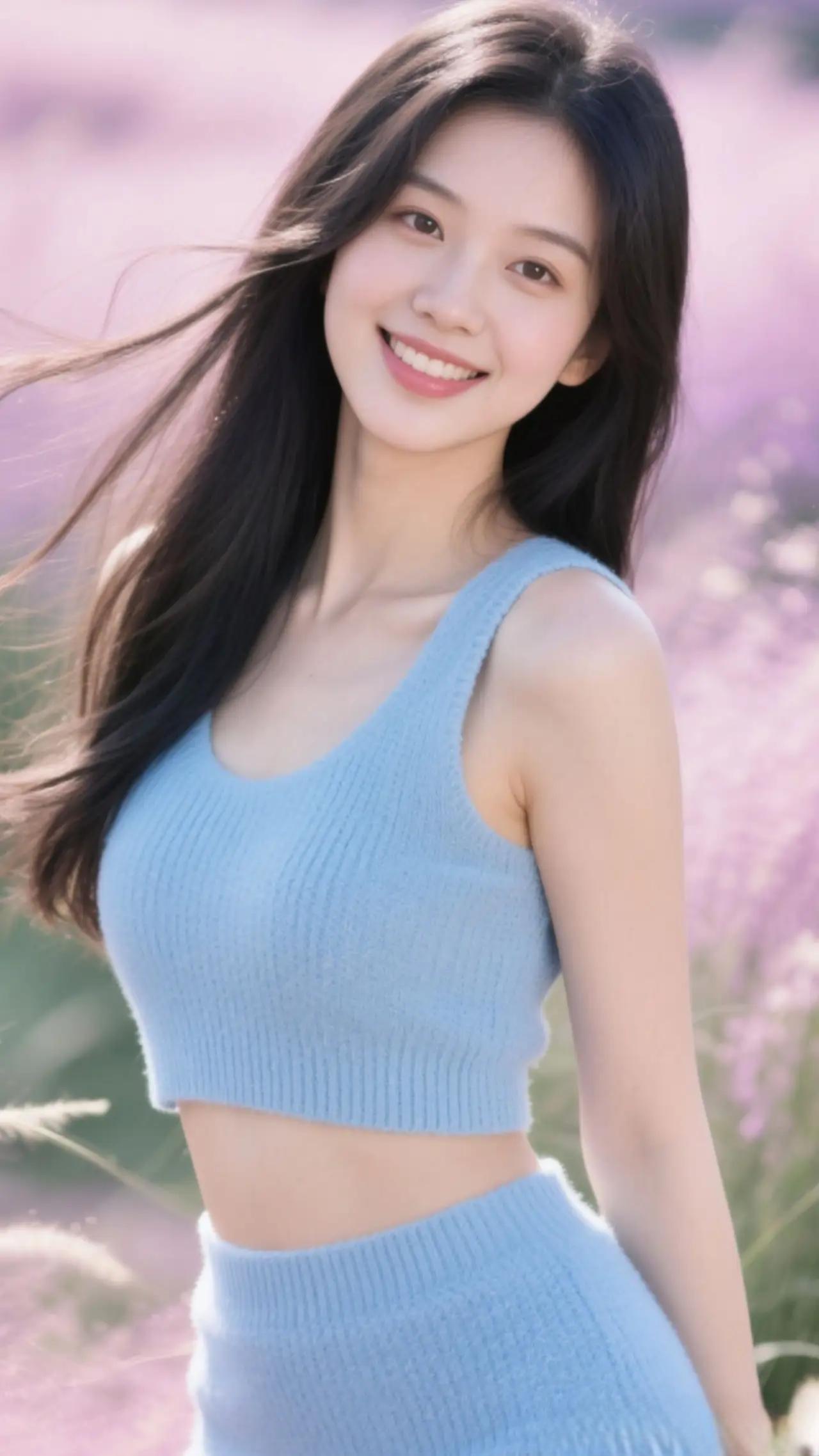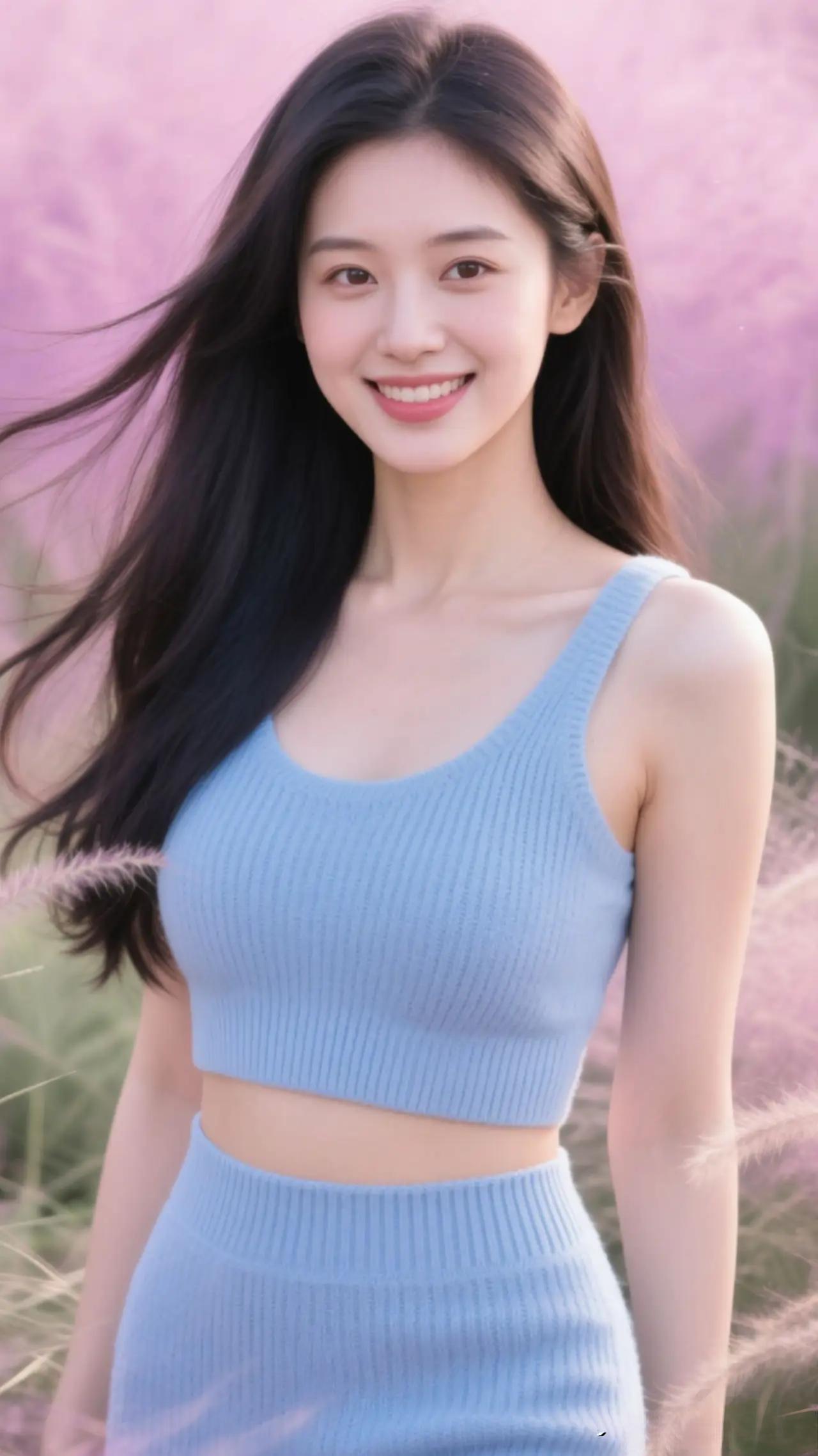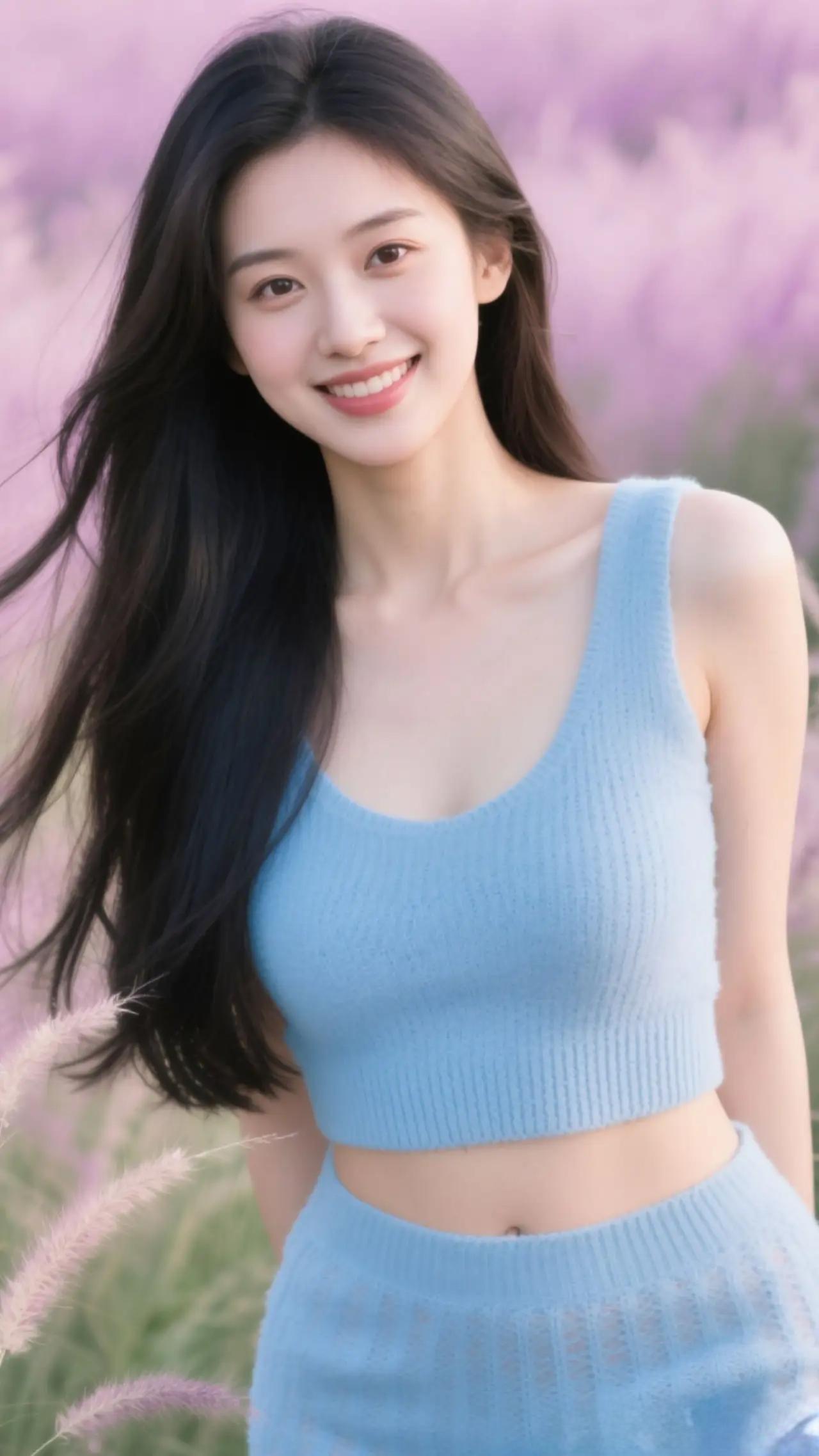 浅蓝色的针织套装,清新优雅阳光气质十足!
