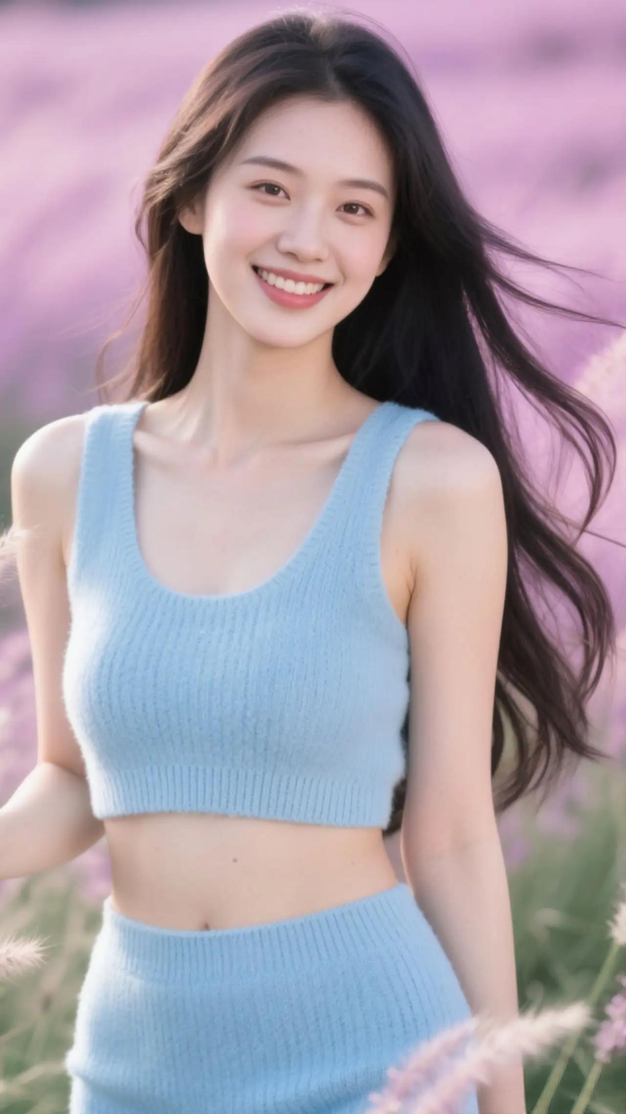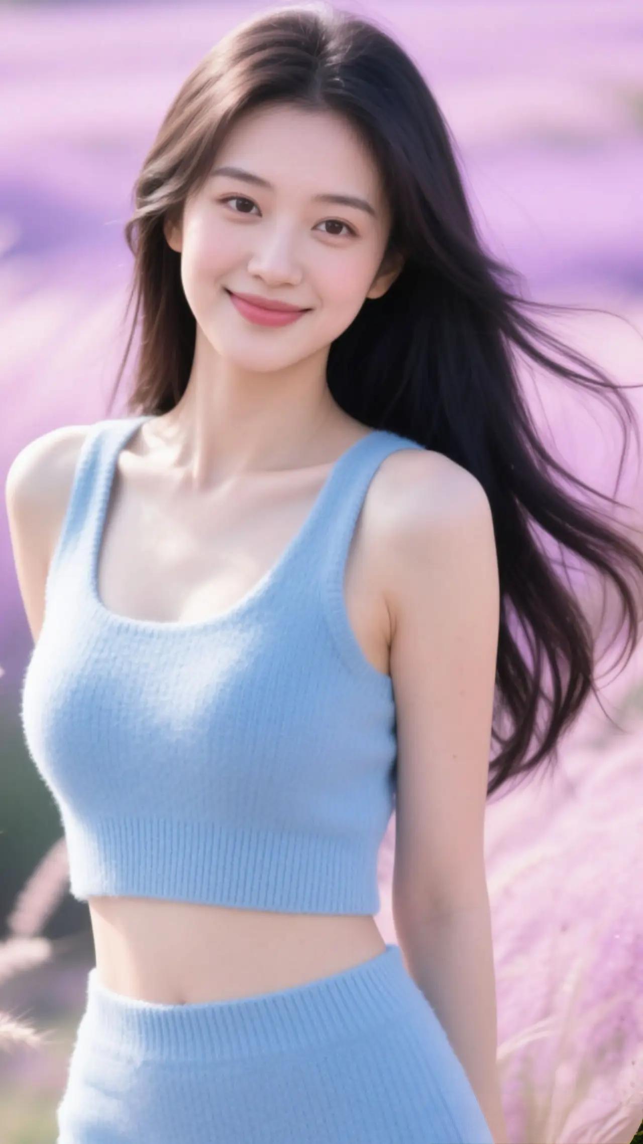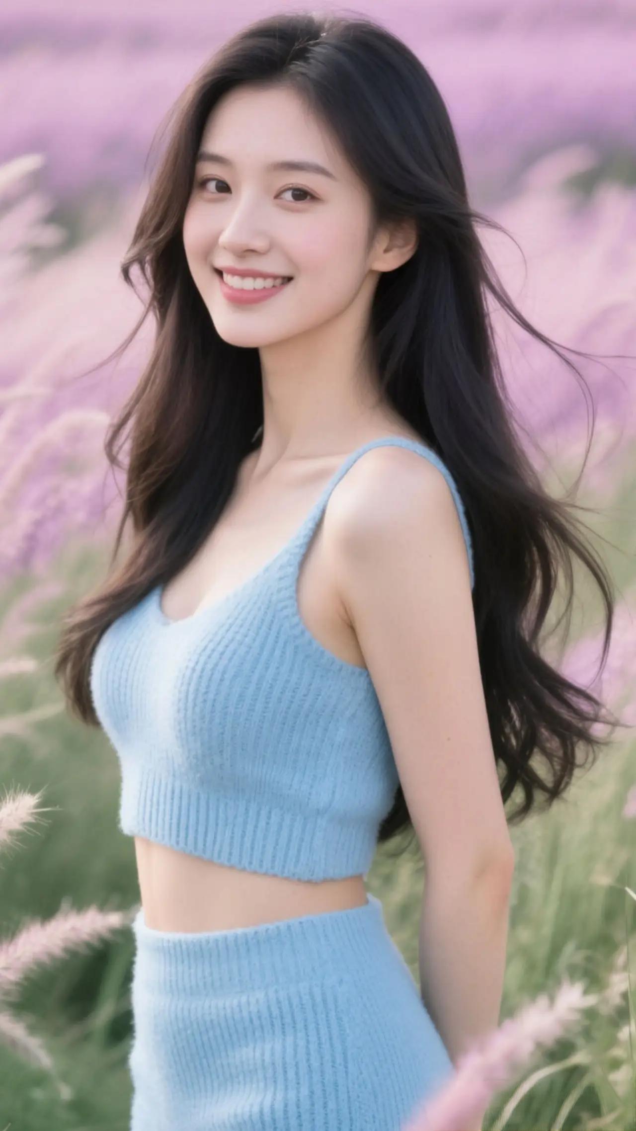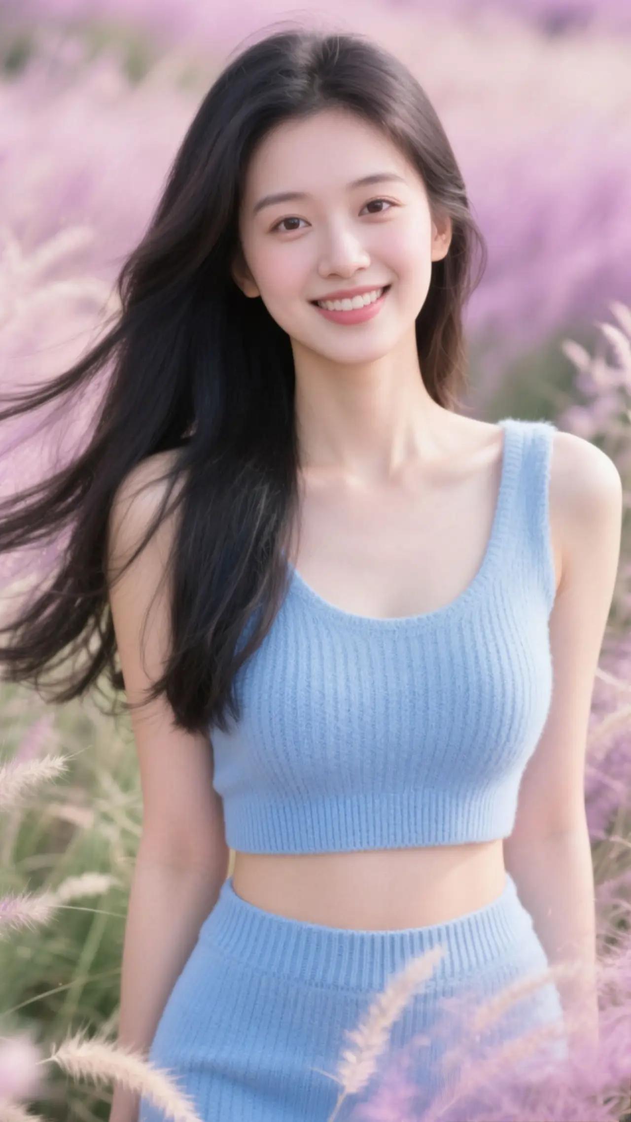 浅蓝色的针织套装,清新优雅阳光气质十足!