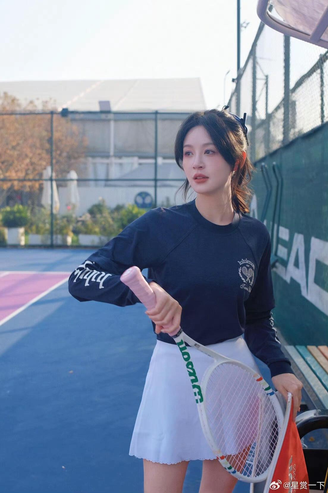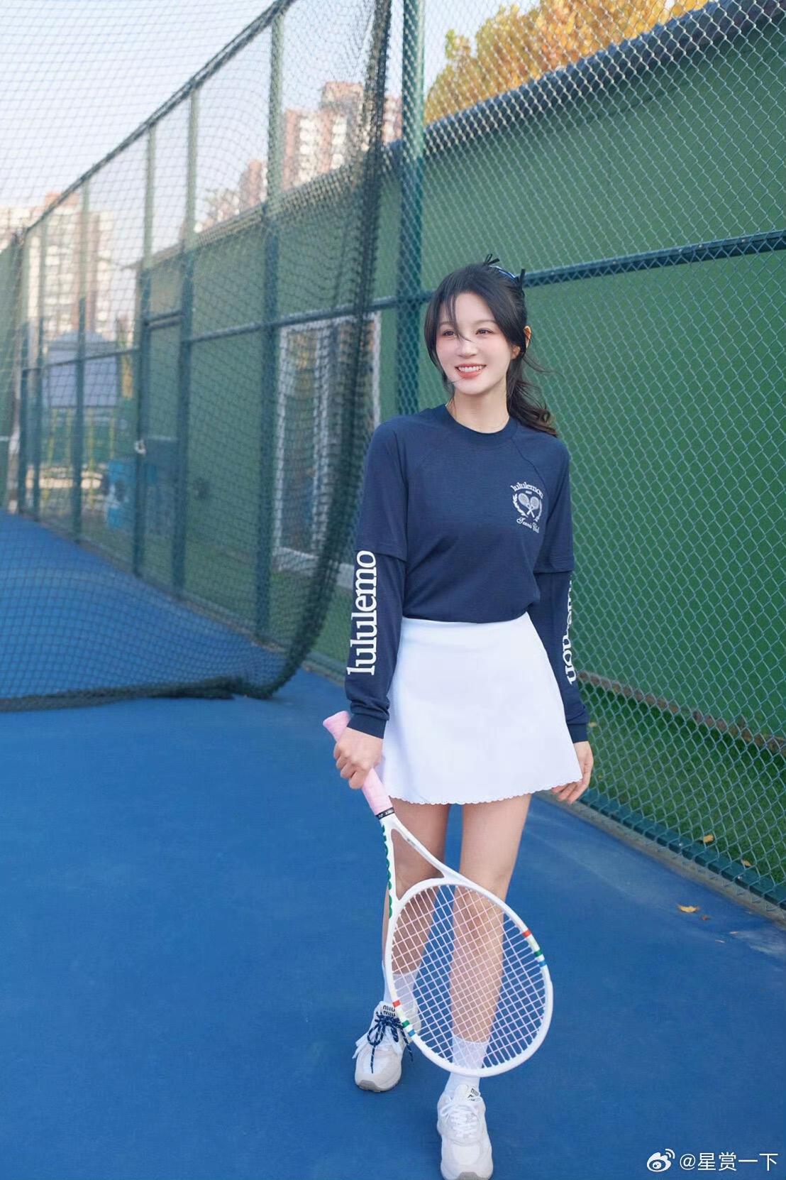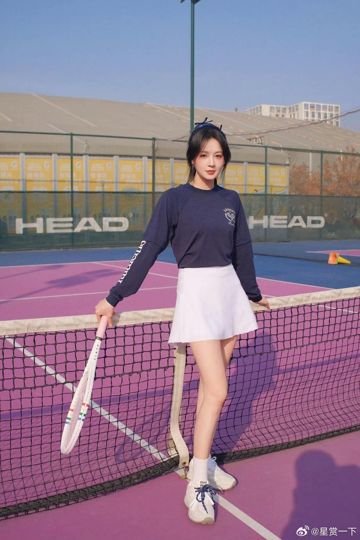 运动少女在球场边,清新自然,活力满满!🏸💪