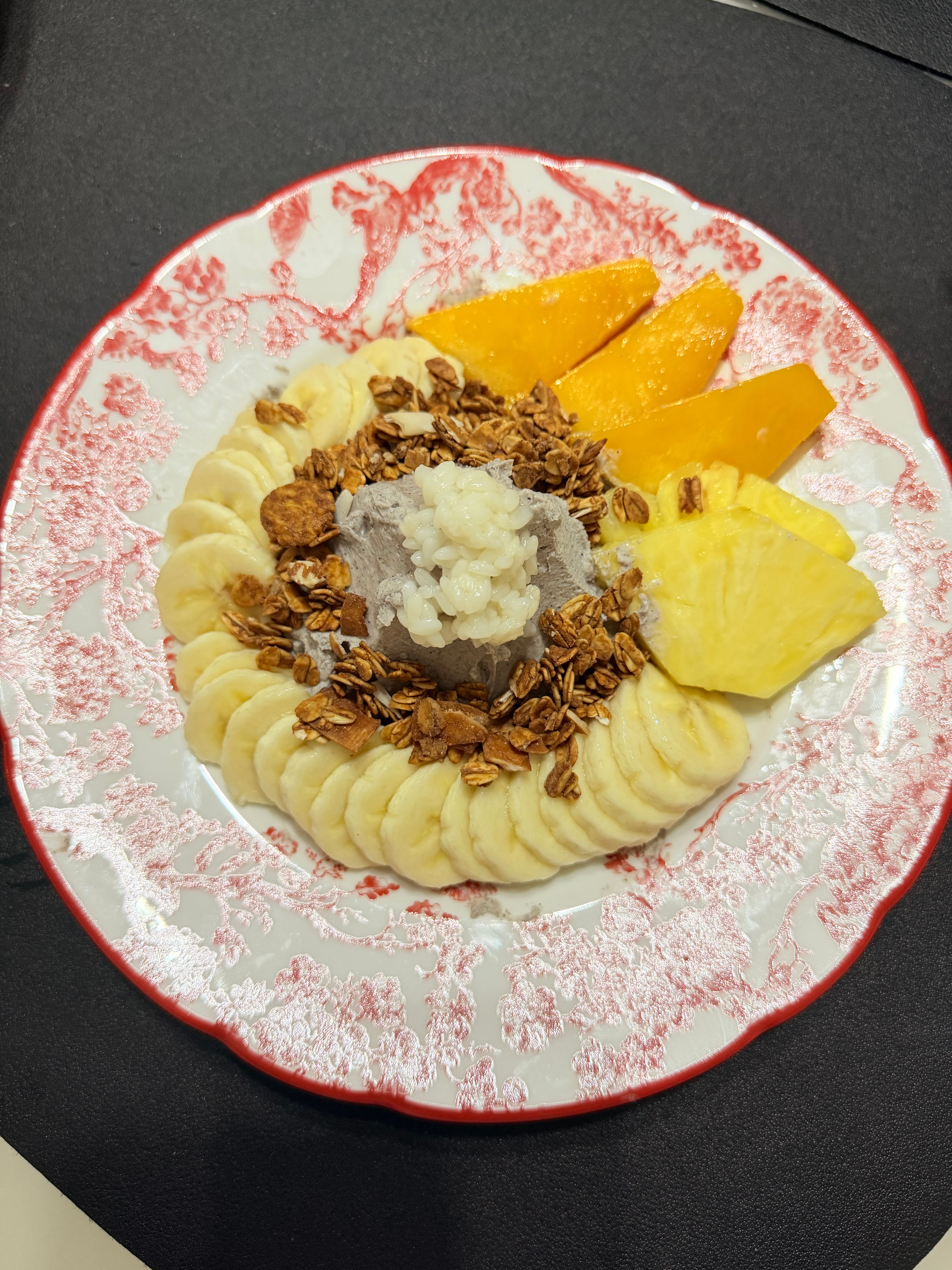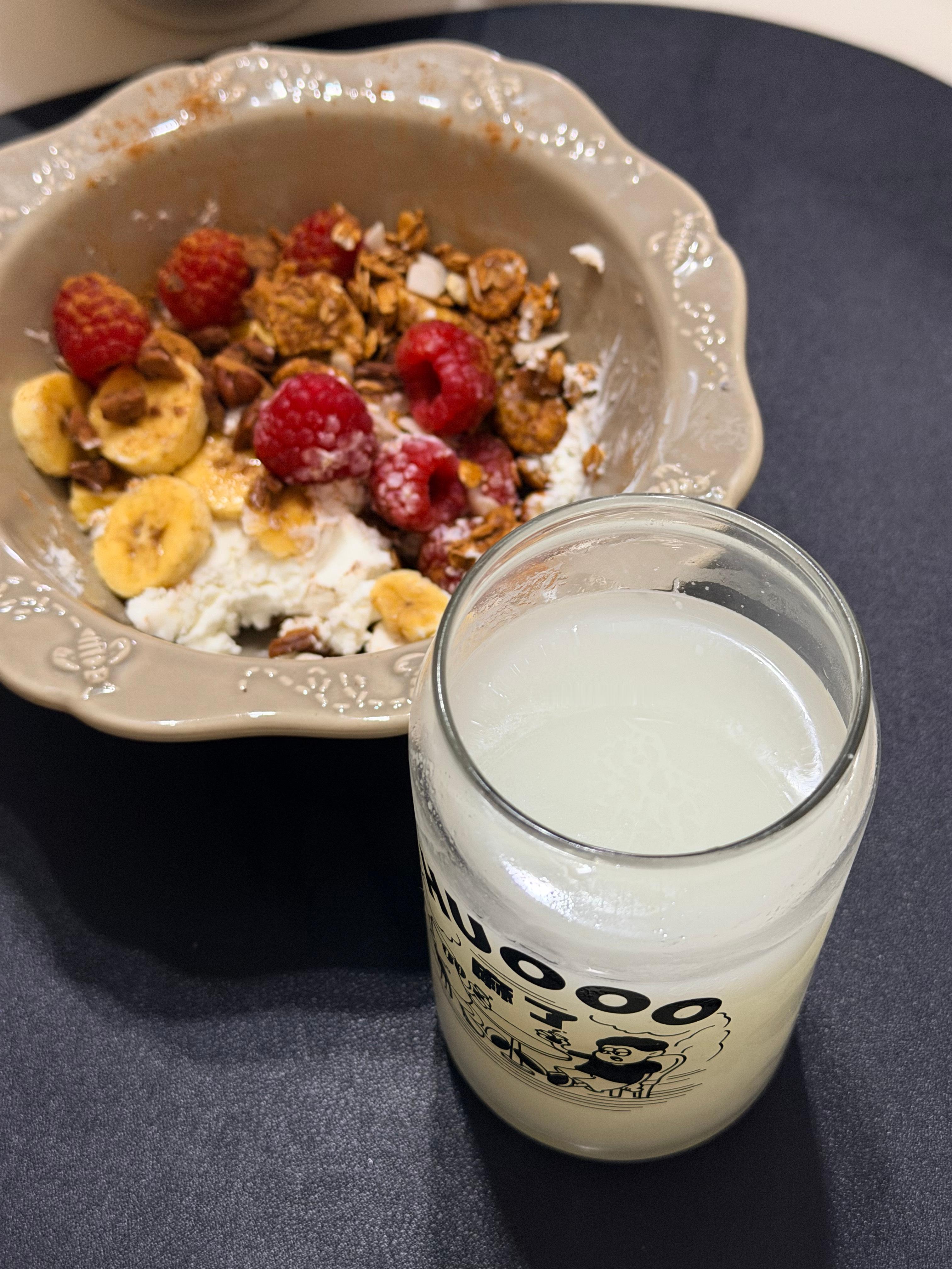 结婚真的很幸福呀,想吃啥老公就给我做。现在任何的酸奶碗已经赚不到我的钱了。何老师已经研究出泰茶酸奶碗,焙茶酸奶碗,黑芝麻酸奶碗了,兰格格做出来真的好吃。