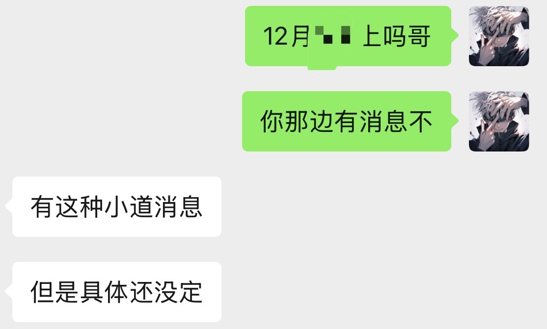 瓜主和我的料时间对上了!都是12月初。但具体时间未定,还是一切跟官方走吧。