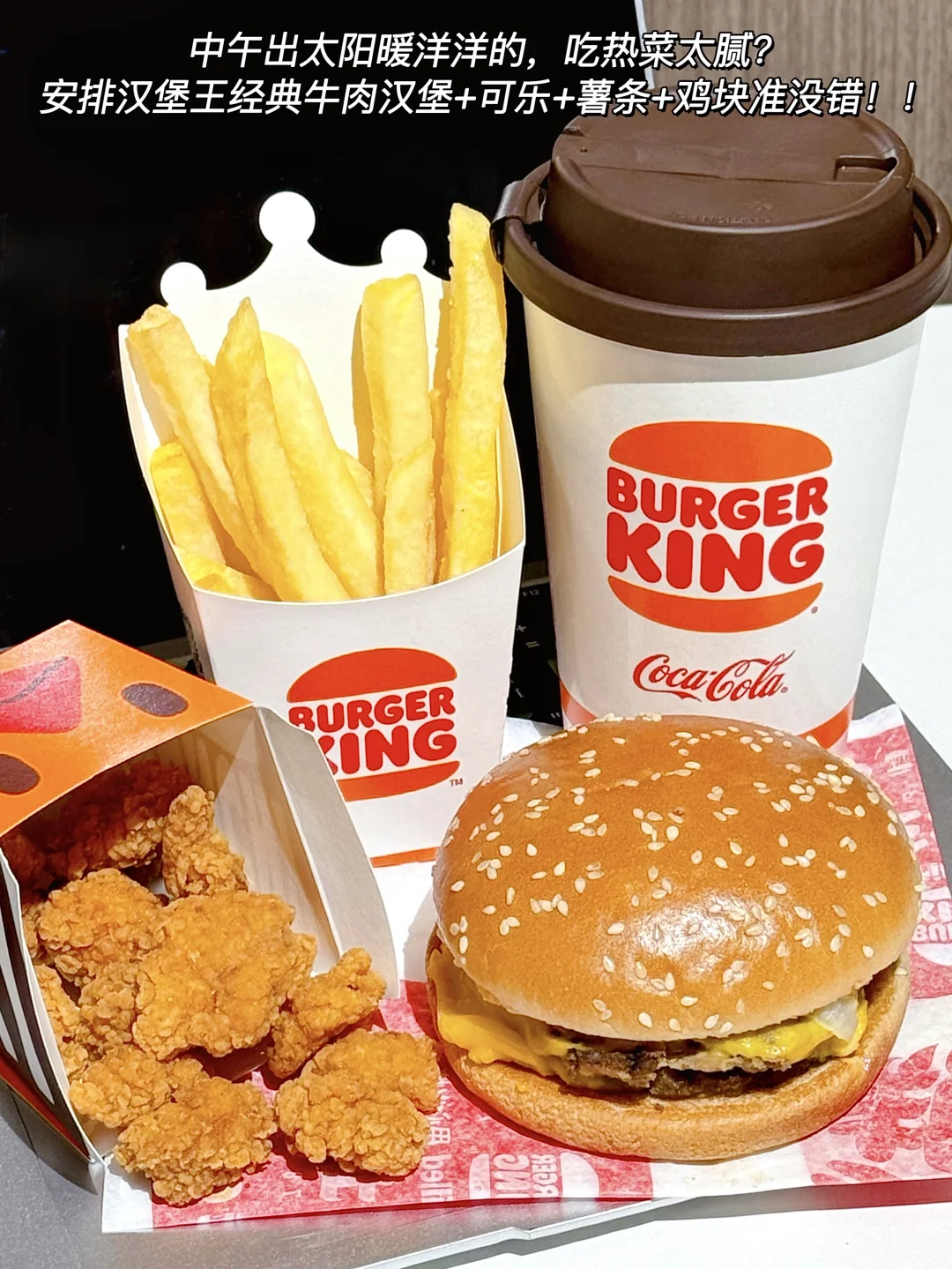 中午热到冒油就点🍔汉堡薯条➕🥤可乐,一口下去清爽解腻,瞬间回血~