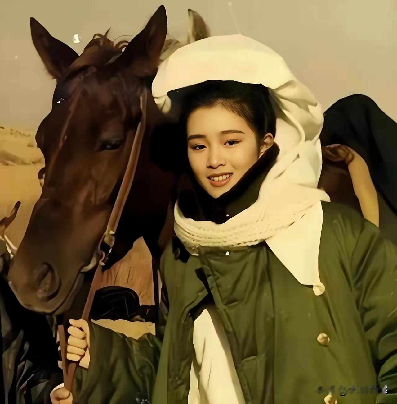 巩俐穿着军大衣,牵着高头大马,这张照片非常的经典,非常值得收藏!拍摄这张照片的时,应该是上个世纪80年代,那时候她,也许刚刚出道,从眼神和表情上看,显在非常的青涩,显得非常的单纯,这是那个时代的普遍特征,喜欢巩俐,为她点赞!