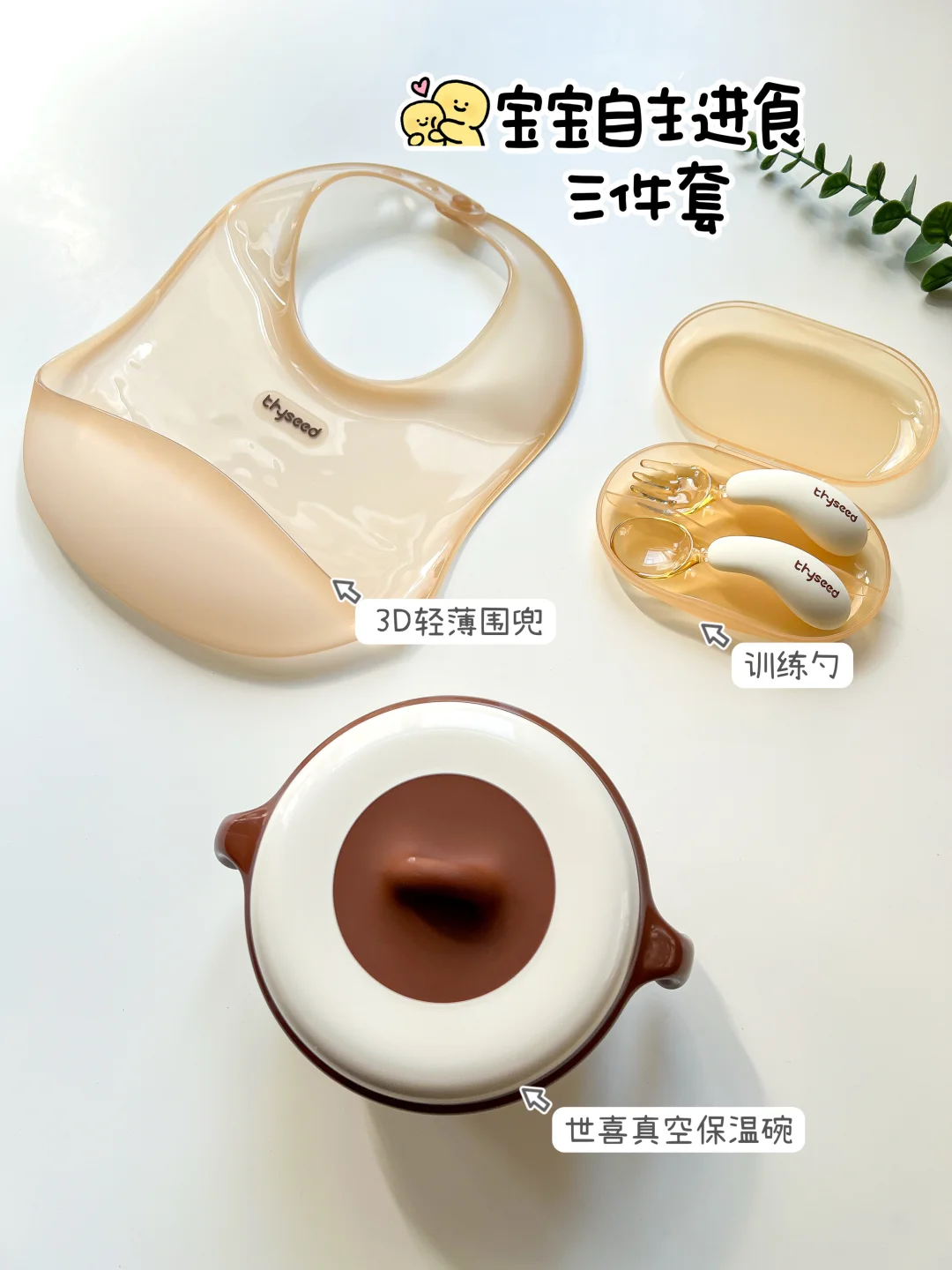 🌈很多妈妈给宝宝用什么餐具合适,尤其是刚开始学习自主进食的宝宝,拥有一套好用又好看的餐具能让宝宝对吃饭的兴趣大大提升,我家宝宝一直在用的世喜保温碗,内碗是316L不锈钢材质,给宝宝用的,好的材料更安心。一体式真空锁温层,可以让热量内循环心,长效锁温4小时~尤其是秋冬天,饭没一会就被吹凉了,这个保温碗可以让宝宝吃的每一口饭都是温热的,颜值也超高~让食物都变得更有食欲◎光面内胆,不卡米粉,清洗也很方面,冲一冲就能洗干净~利用率很高!