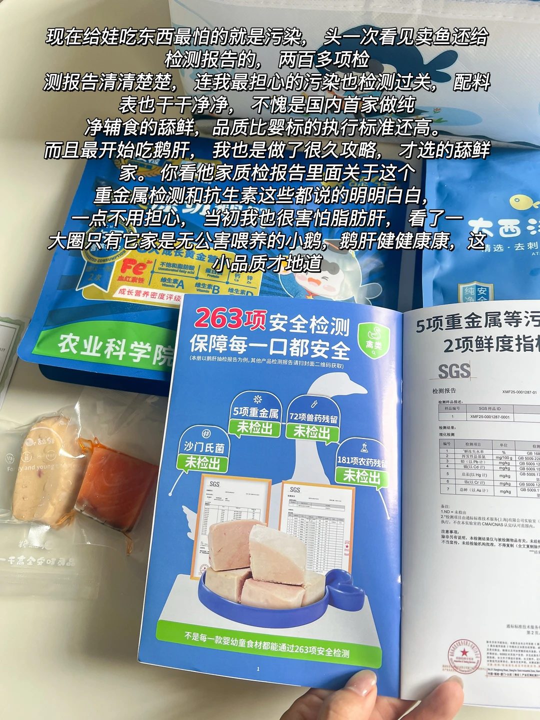 🌈0-6岁是宝宝身体、脑部的黄金期,我每周都给小叶子安排2-3次深海鱼以及高铁鹅肝,补充血红素铁、蛋白质和 DHA~儿保的时候也建议多吃这种高密度的辅食。闺蜜推荐了舔鲜家的三文鱼和鹅肝,每款辅食都有200多项欧盟安全检测~给宝宝选入口辅食都很谨慎,收到快递开箱看见检查报告的时候,就知道自己没有选错,简直太安心了,配料表也超干净,只有原材料~宝宝吃着很放心。