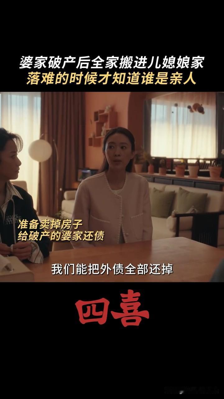 《四喜》明珠把房子卖了,把婆婆接自己妈妈家去住了[灵光一闪] 明珠之前非要把冯家那套婚房过户,现在终于派上用场了,明珠现在把房子卖了之后,还能把公公欠的外债还掉,然后还能剩下一个30万,这个决定真强 最后明珠把婆婆接到了爸爸妈妈的小饭馆去住,明珠怕自己妈妈受委屈,妈妈却说,我就当她在唱歌🎤 最后明珠婆婆真的过来住了,还住在明辉的房间里面 我就奇怪了,婆婆家里那个喜欢嚼舌根的小姨嘞,还有三亚的别墅嘞,编剧你是不是忘记了