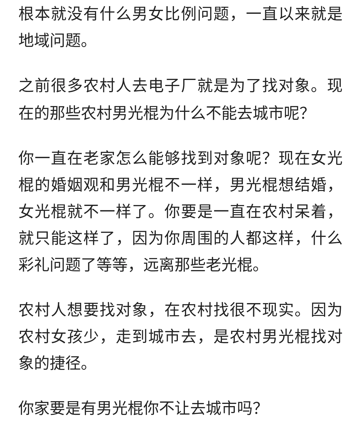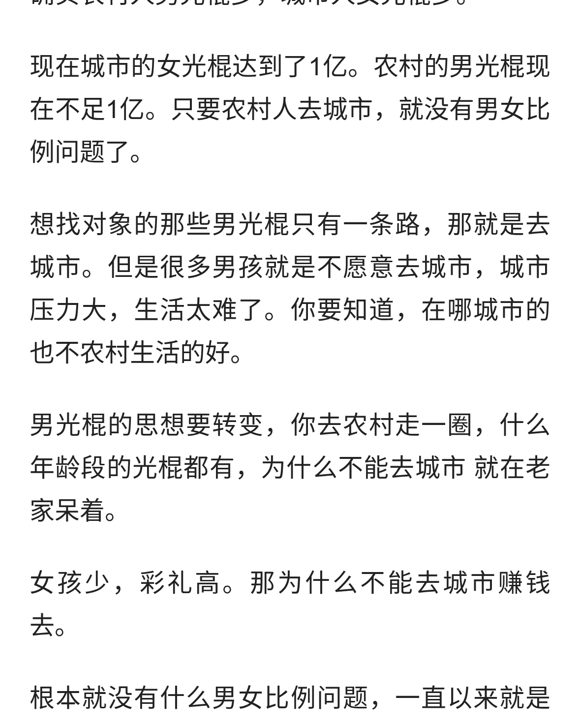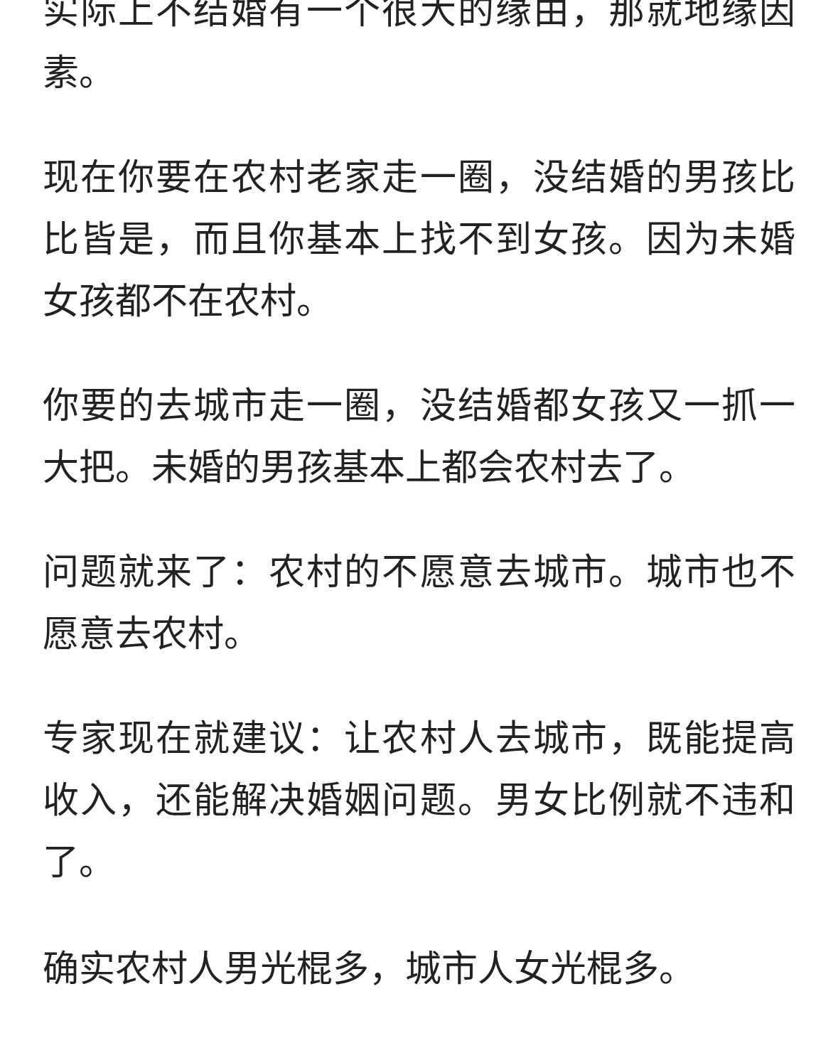 知名专家经过研究发现,原来城里的女光棍多,乡下的男光棍多。