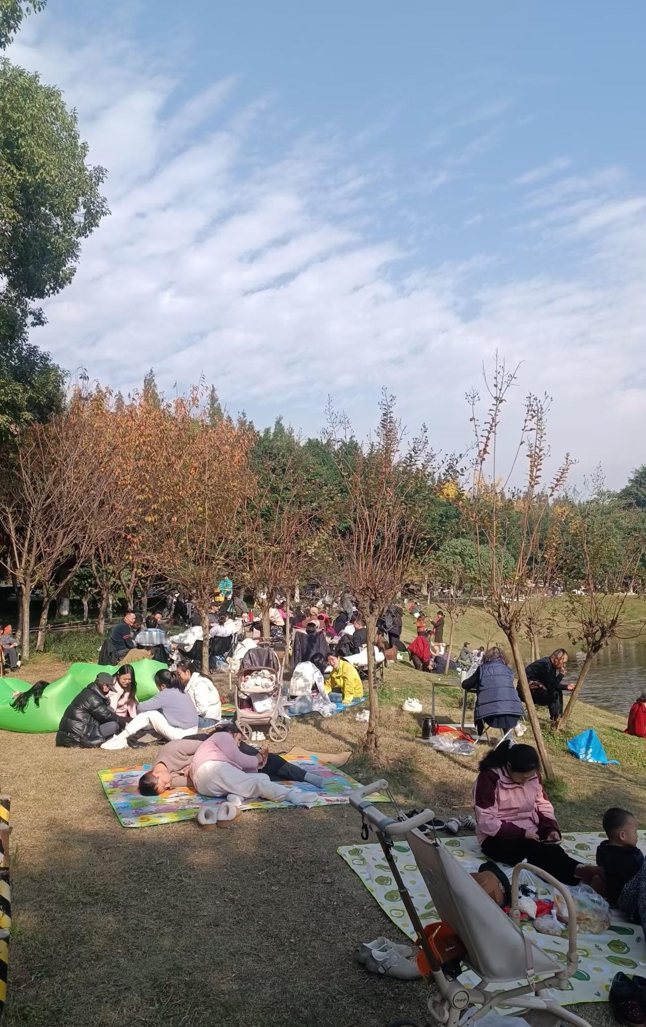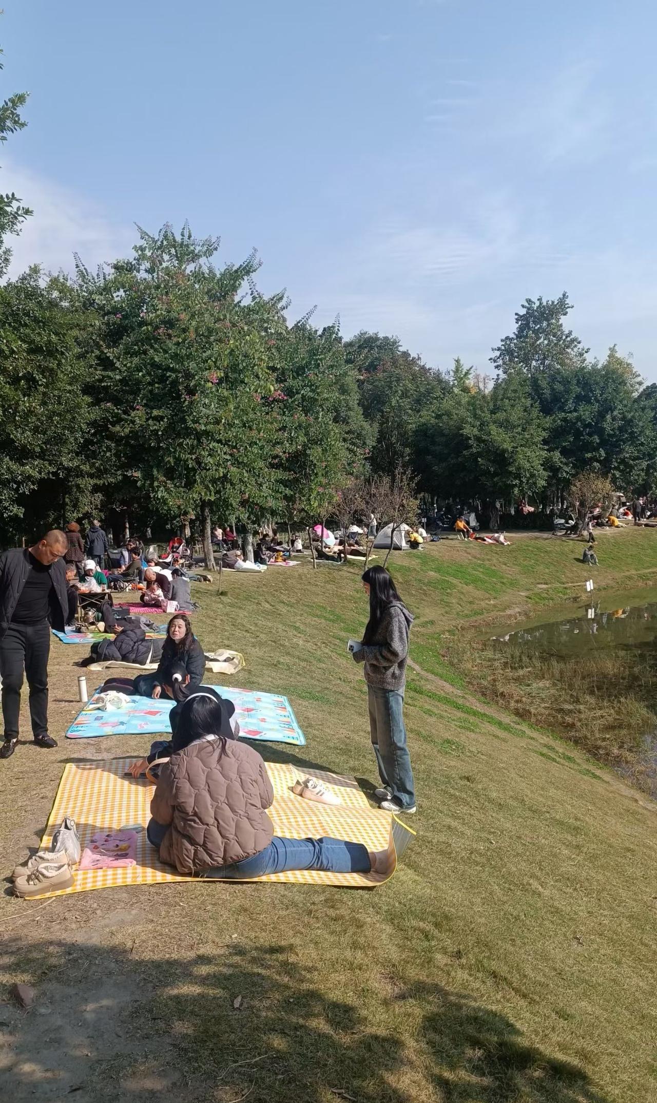 太阳出来暖洋洋,男女老少晒太阳 大美成都,昨天老天又赏脸了。久违的晴空万里,艳阳高照,实在是太给力了。你看暖阳慷慨地铺开金色灿烂的绸缎,天空湛蓝湛蓝,白云朵朵像棉花一样飘荡在天上,树叶金黄灿烂,倒映在碧波荡漾的湖面,如诗如画,美不胜收。 有人调侃道:成都人都是向阳花,见到太阳就欣喜若狂,此话不假。 如此好天气,真是太难得了!昨天我们到升仙湖公园打卡。你看市民们成群结队乐滋滋的晒太阳,一场集体阳光盛宴好惬意,这生活氛围真美好!希望冬季成都多一些晴天,让大家沐浴灿烂的阳光,浑身暖洋洋,精神爽朗朗。