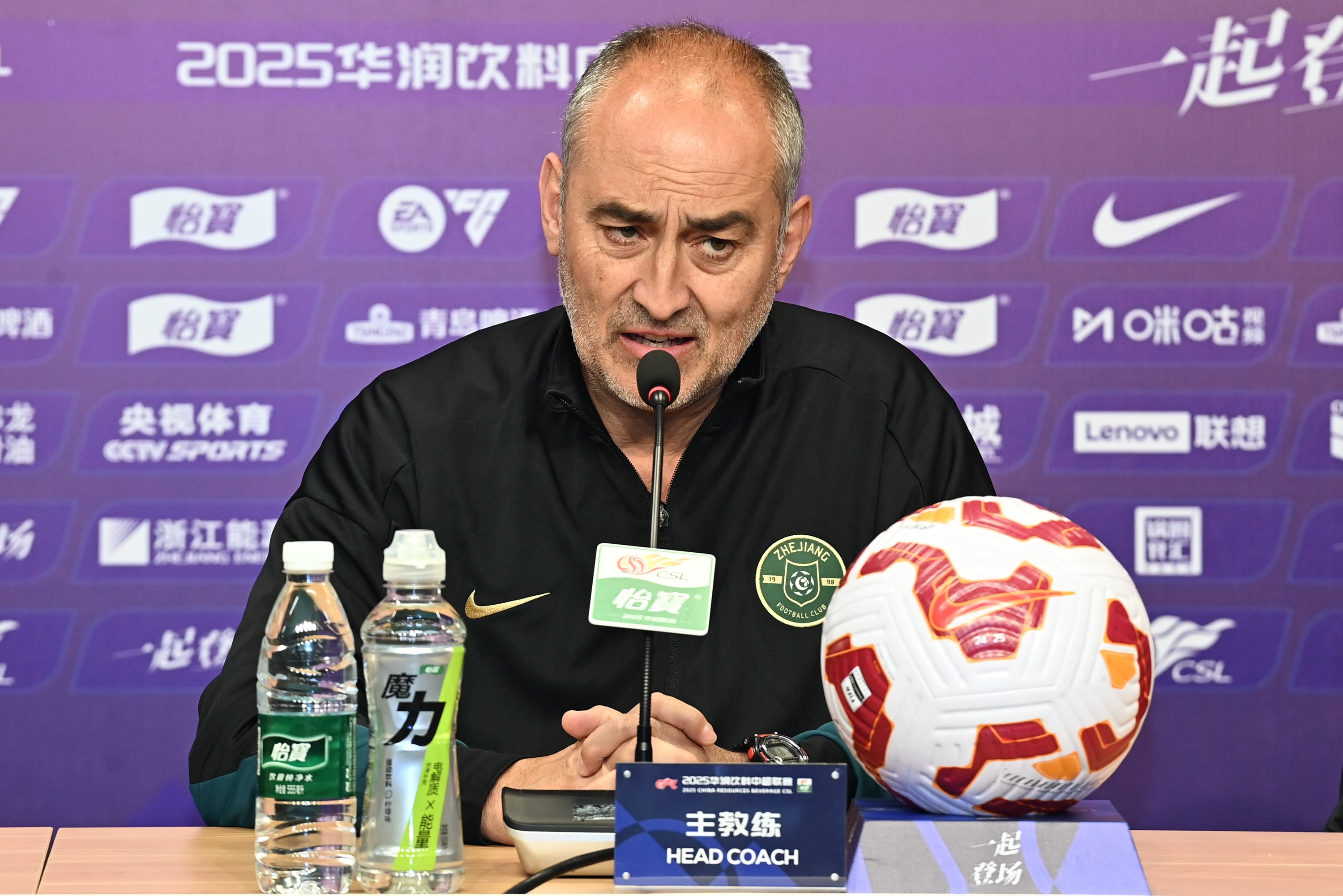 直播吧11月21日讯中超联赛最后一轮,浙江队将主场对阵青岛海牛。据《足球报》报道,赛前,浙江队主帅卡内达携球员弗兰克出席了新闻发布会。