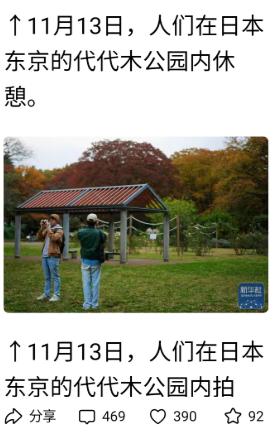正当全国人民都在批斗日本首相高市早苗之时,新华社突然发了一组日本东京代代木公园的图片,这是什么意思?实在令人难以费解! 新华社发布的东京代代木公园秋日图片,绝非随手定格的风景,而是用镜头语言写就的“春秋笔法”,那些金黄银杏与茵茵草坪的背后,藏着对历史与现实的精准注解,每一处细节都在与高市早苗的虚伪形成无声对质。这134公顷的城市绿地,如今是东京人散步打球的休闲去处,周末挤满了放松身心的上班族,可回溯过往,它的每一段历史都像一面镜子,照出日本部分政客的历史虚无主义本质。 早在上世纪20年代,这里就成了日本陆军的练兵场,那些后来踏上中国、朝鲜等亚洲国家土地的侵略者,正是在这片土地上接受军事训练,他们的刺刀寒光与侵略野心,都曾浸染过这里的土壤。二战日本战败后,这里又摇身一变成为美军的军眷宿舍,成了日本被军事占领的历史见证,直到1967年才正式改建为公园对外开放,从战争工具到和平空间的转变,用了半个多世纪的时间,凝聚着亚洲受害国人民对和平的渴望。 高市早苗显然选择性遗忘了这段历史,她一边在国会公然将中国维护国家主权的正当举措歪曲为“依靠战舰和武力的威胁”,一边多次参拜供奉着二战甲级战犯的靖国神社,这种“既要当历史修正主义者,又要装和平卫士”的操作,在代代木公园的历史面前显得格外可笑。 11月7日她在国会的发言中,甚至暗示可能援引日本《安全保障关联法案》介入台海事务,这番言论不仅违背《中日联合声明》的政治基础,更与代代木公园所承载的和平转型历史背道而驰。要知道,1895年正是日本通过《马关条约》强行割占台湾,实施长达50年的殖民统治,而台湾光复不过是回归历史正轨,高市早苗将加害者伪装成“受害者”,把中国维护领土完整说成“威胁”,这种颠倒黑白的本事,在代代木公园的“前世”面前不堪一击——当年从这里走出的日军,正是打着各种荒谬借口发动侵略战争,如今她的言论不过是历史谎言的翻版。 图片里若隐若现的代代木竞技场,更是另一个有力的注脚。1964年东京奥运会时,这里曾是奥运村的核心区域,当时日本试图通过奥运会展现战后和平发展的姿态,而代代木公园作为奥运配套设施,也成为和平形象的一部分。 如今高市早苗政府却在不断推动军费扩张,2025年日本军费预算再创新高,较十年前增长近一倍,这种“一边享受和平红利,一边制造地区紧张”的做法,让代代木公园承载的奥运和平精神变得格外讽刺。公园北侧与明治神宫相邻的森林公园里,每年春天樱花盛开时都会吸引大批游客,这些享受和平美景的人或许不会想到,他们的首相正在用危险言论将地区推向冲突边缘。 高市早苗总把“维护地区秩序”挂在嘴边,可她的所作所为却与代代木公园从战争练兵场到和平公园的转变逻辑完全相悖,就像有人在和平纪念碑前宣扬战争,虚伪得连遮羞布都懒得拉。