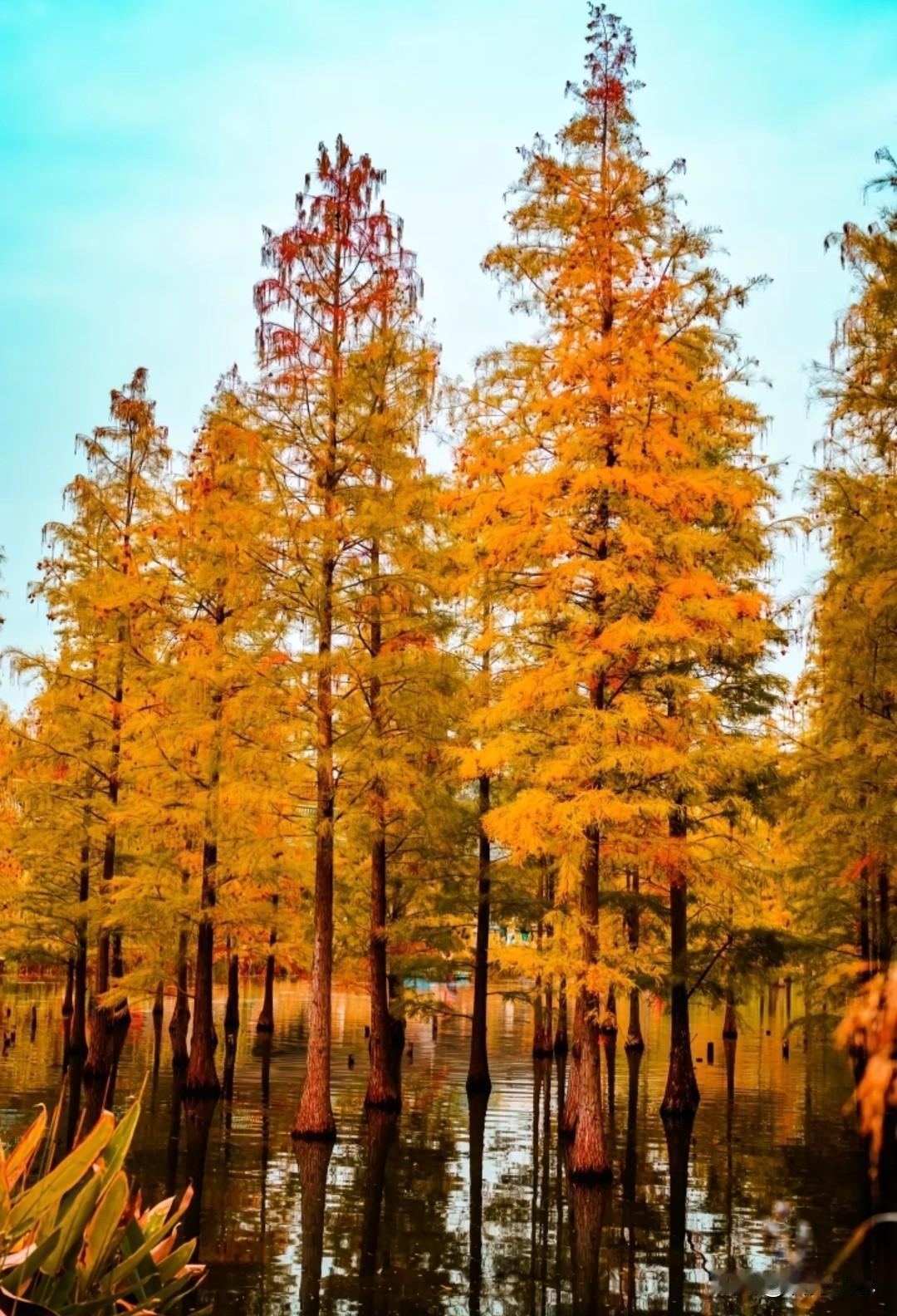 是时候去一趟成都白鹭湾湿地公园了! 11月的成都白鹭湾湿地公园,水杉林正上演着一场视觉盛宴——从青绿到金黄,从橙红到赭褐,一棵树就装下了整个秋天的色谱。 从湖岸边上望去,水杉的倒影在湖面交织成莫奈式的油画。午后阳光穿过枝叶,洒下斑驳光影;偶有白鹭掠过水面,惊起一圈圈荡漾的秋意。骑行在水杉林道,空气中飘散着草木的清香,十分治愈。 Tips: 地址:成都锦江区时蔬路108号(1号门进入最近) 交通:地铁6号线金石路C口+骑行10分钟/换乘511路 门票:免费开放,24小时可进 最佳观赏期:11月中下旬 穿搭建议:白色/米色系衣物最出片 这个秋天,去白鹭湾看油画级的水杉林吧。在这里,成都把最温柔的秋天,都写进了每一片变色的叶子里。 森林公园水杉树 观水杉白鹭
