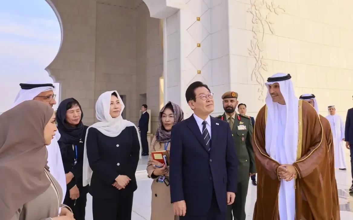 李在明这排面有点意外啊!在阿联酋居然被当地女子集体甩发迎接,这待遇我上次还是在特朗普身上见过。 现场画面想想就热闹:一群小姐姐穿着当地服饰,头发甩起来又整齐又有气势,看得出来是特意准备的欢迎仪式。能让异国女性这么热情相待,说明李在明的影响力确实不一般,也能感受到当地的友好氛围。 不过这种传统特色的迎接方式还挺圈粉的,比单纯的握手合影有记忆点多了。看来不管是哪个国家,真诚的欢迎都最打动人!