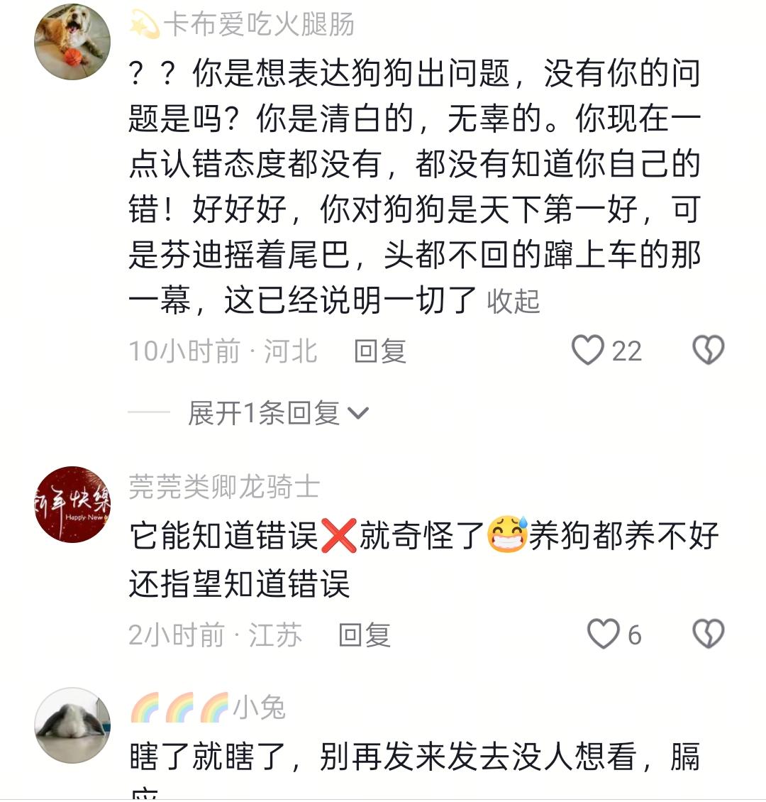 芬迪的主人王女士再次发声称自己没有虐待芬迪,并把去年报名的活动截图发出来,后面还附带一段视频,视频内容是一名男子带着导盲犬去旅游,也有爬山玩水,为什么到她这里就不行了? 所以王女士到现在还没有认识到自己的错误,可把广大网友给气着了。 但我看完视频中的男子带着导盲犬爬山玩水,才发现该男子是真正把导盲犬当成自己的伙伴以及家人,再看看其的导盲犬面对主人时满脸信任以及笑容时,这是王女士所不能比的,要知道一个人好坏,看狗狗表情以及行为就知道了。 王女士抱着芬迪让它去好好改造,而芬迪一脸落寞,笑都笑不出来,很想挣脱主人,随后被基地工作人员牵走时,芬迪当场笑了出来,边摇尾巴边上车。 再看看男子这边带着导盲犬去旅游,而导盲犬全程都很愉快,无论面对生人或者主人时都表现的很开心,不像芬迪那样畏畏缩缩,小心翼翼的。 所以,王女士别再洗白了,广大网友们有眼睛看,希望大连基地别将芬迪还回去,也希望好心人继续关注一下!