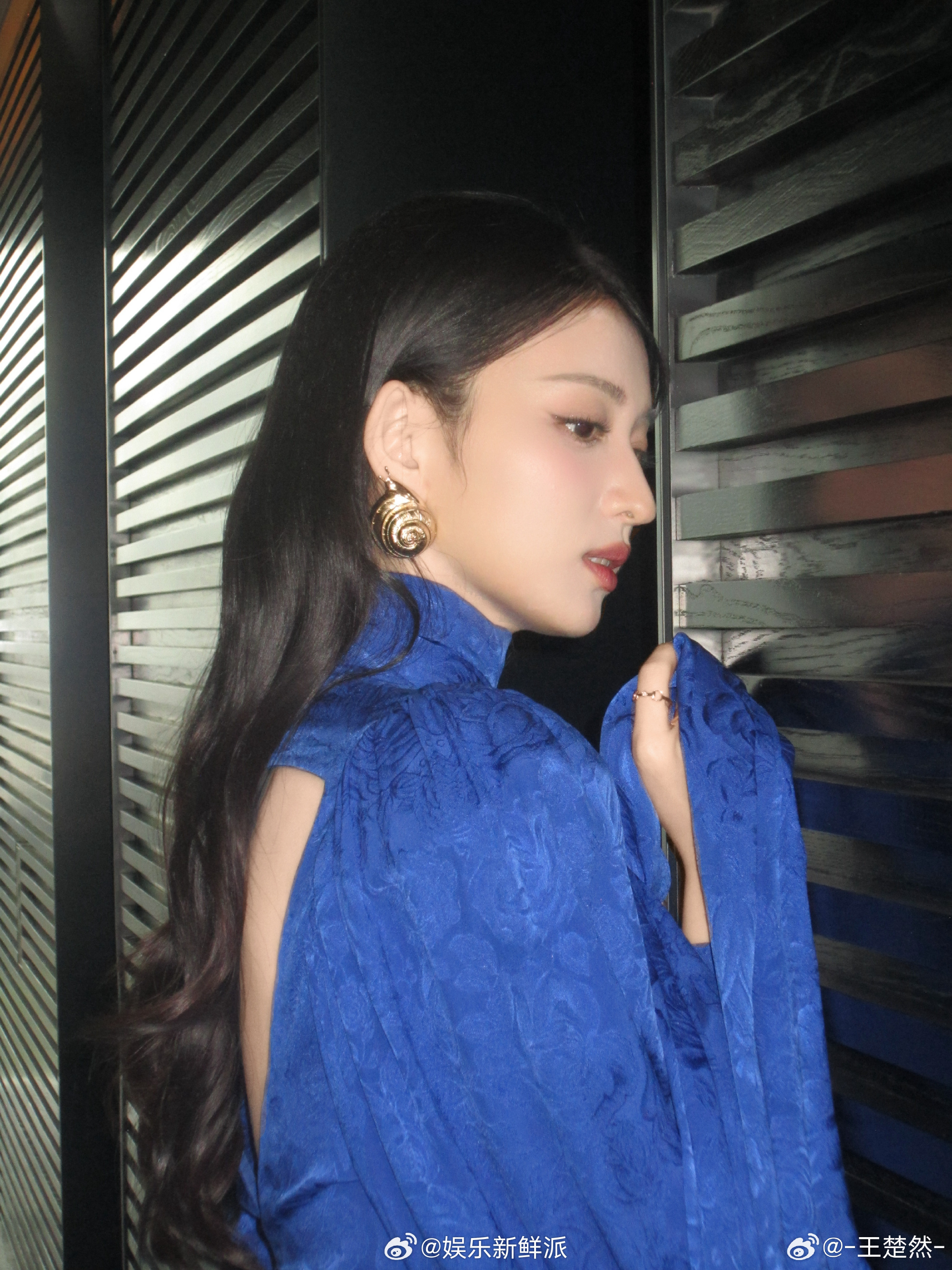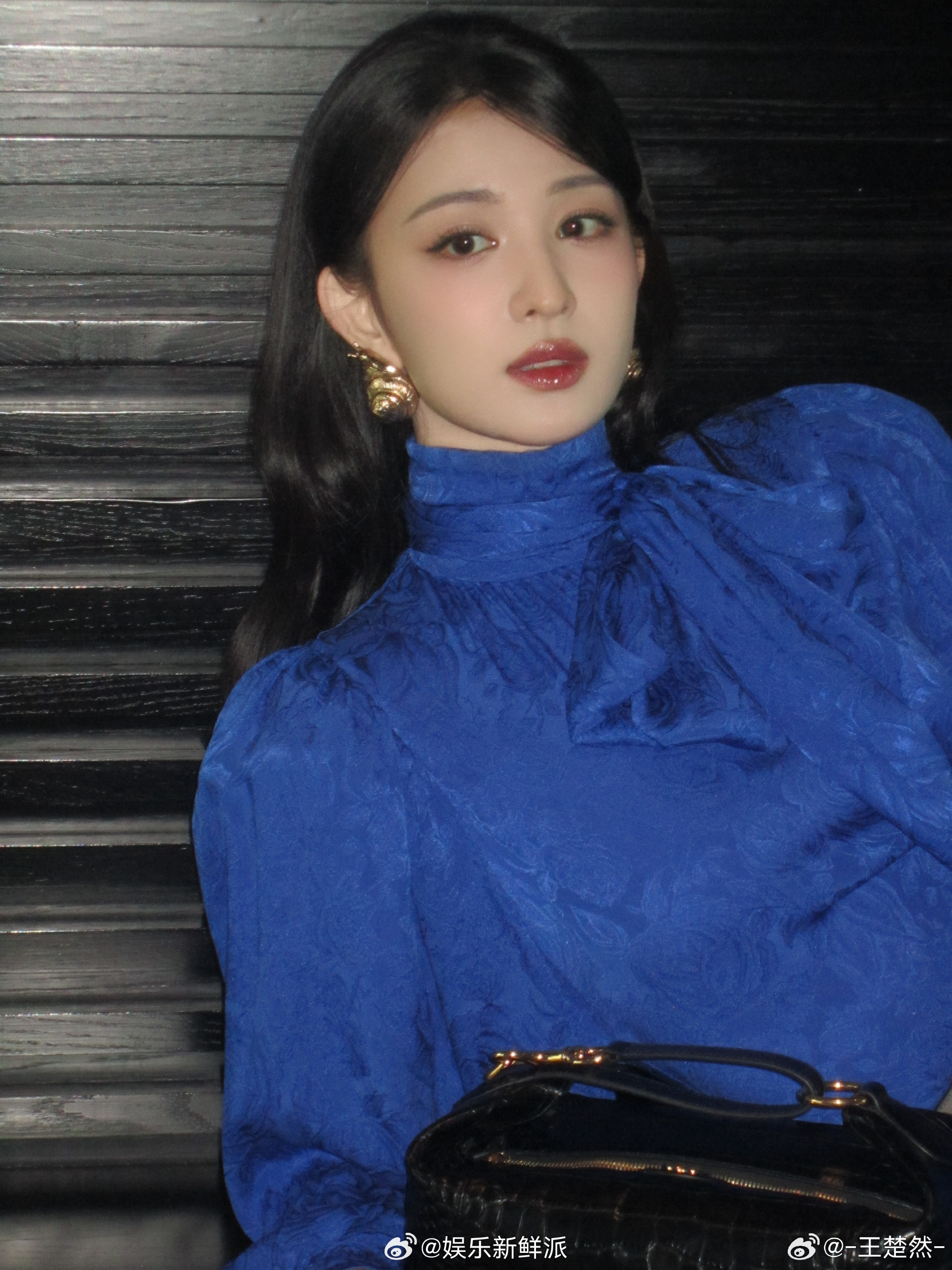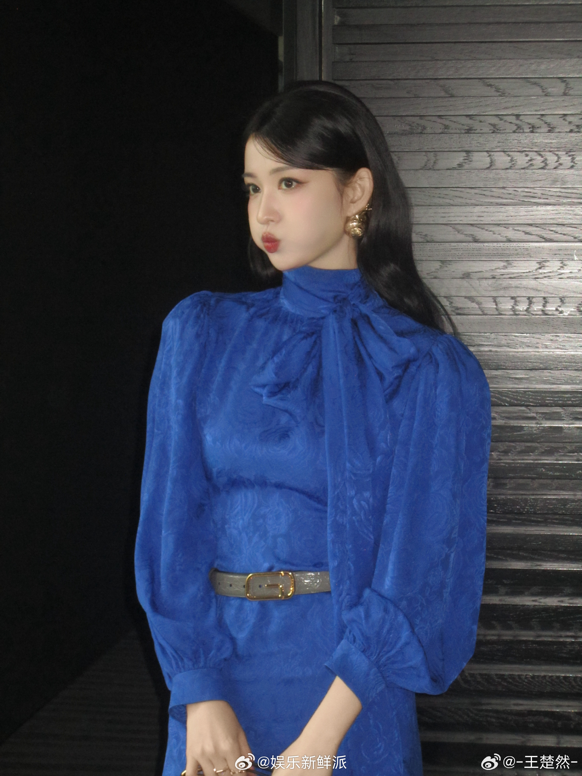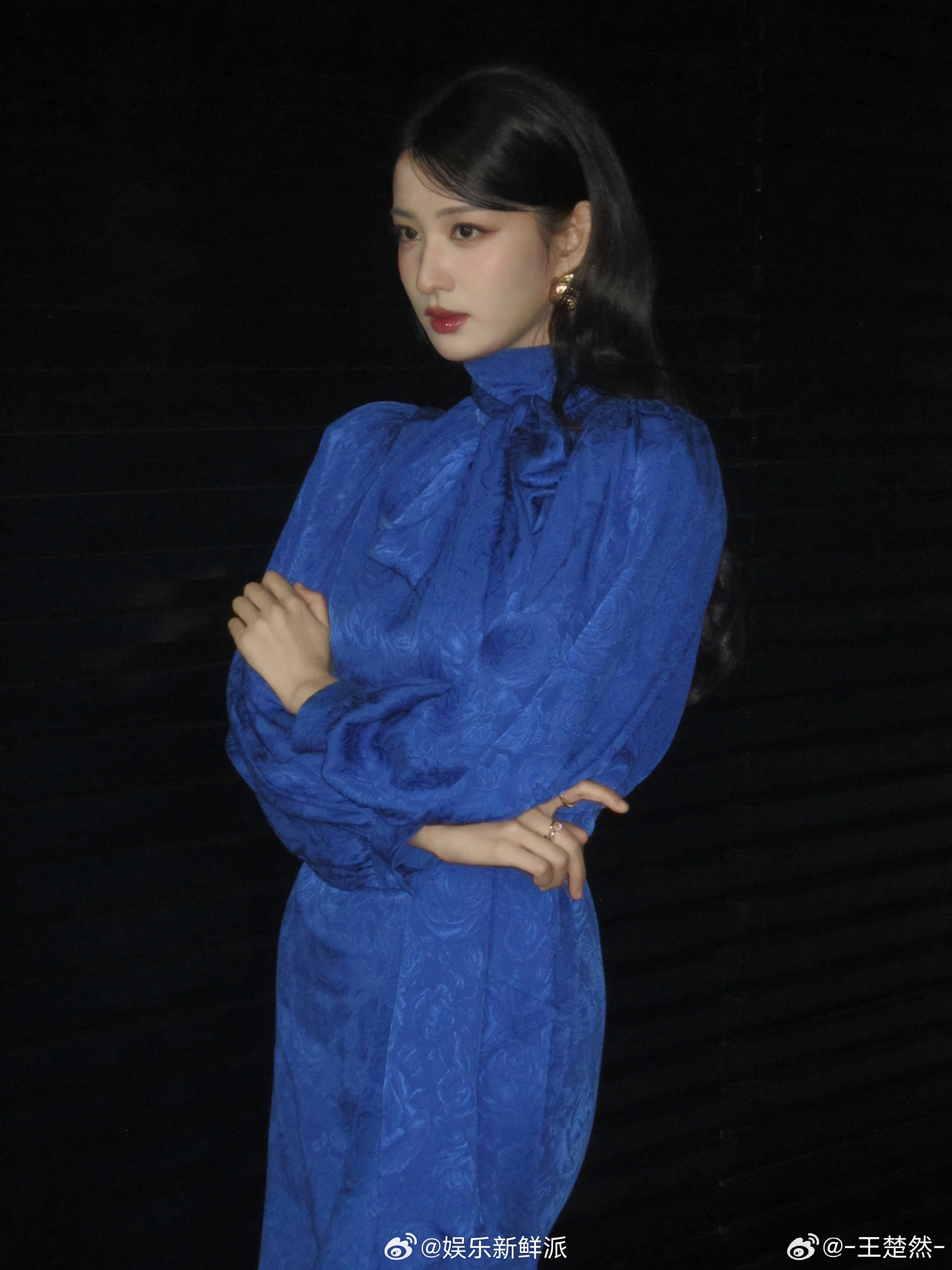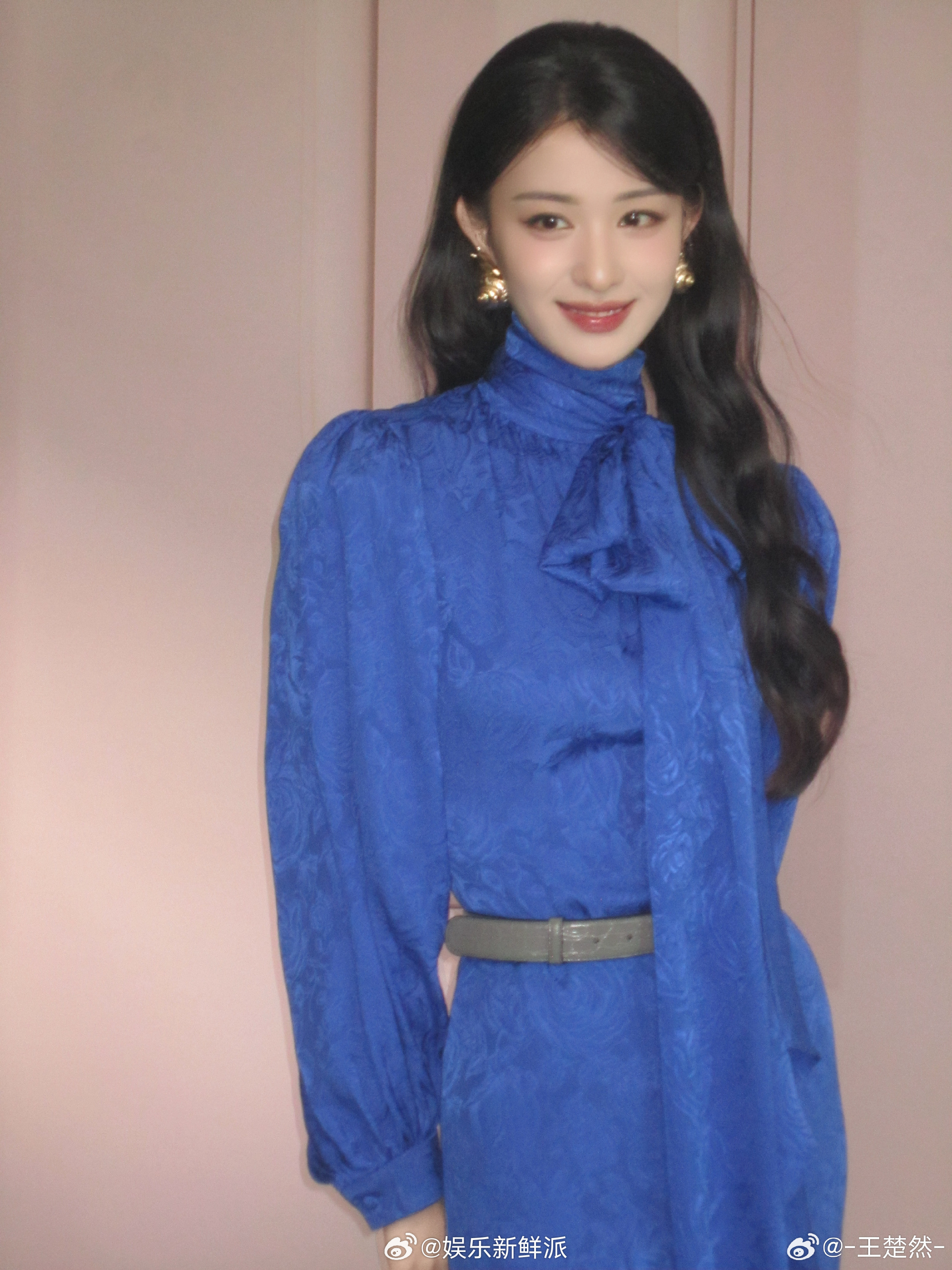 王楚然蓝裙复古摩登,优雅摩登气质狠狠拿捏了,真是美我一大跳~