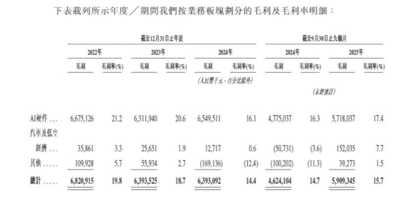 报告期内,领益智造的收入主要来自AI硬件业务。2022年至2024年及2025年前三季度,该业务贡献营收占比分别为91.2%、89.9%、92.7%及87.6%。汽车及低空经济业务的收入占比分别为3.1%、4.1%、4.8%、4.5%及5.2%。