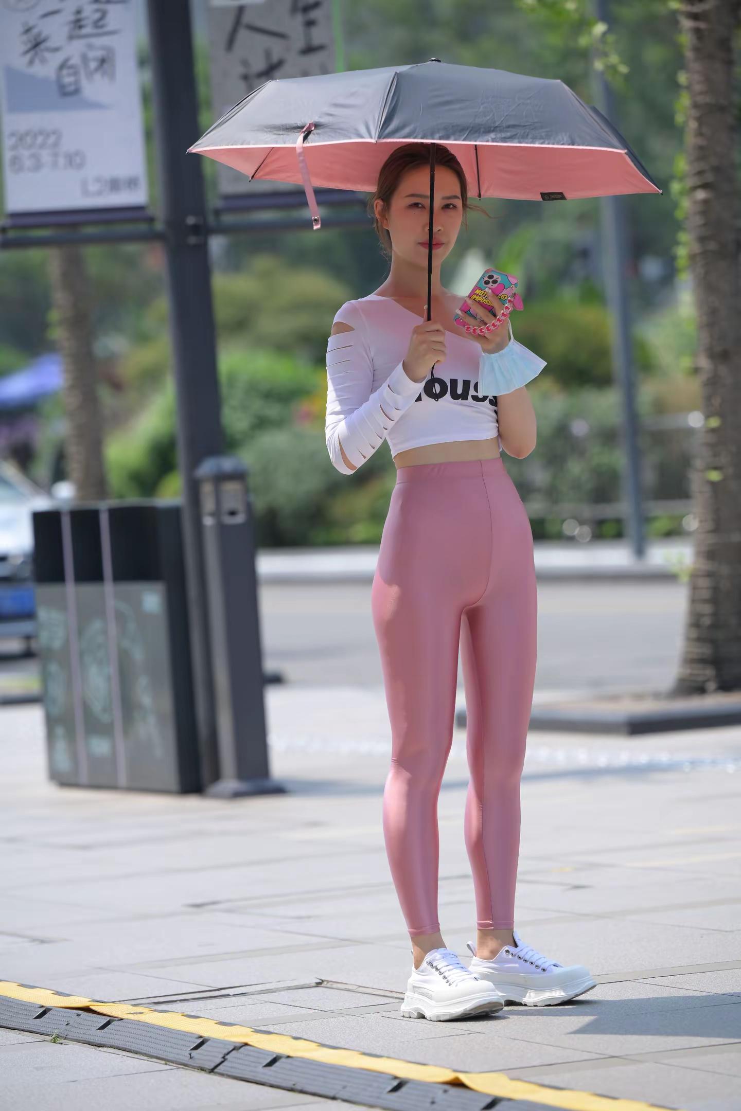 粉色紧身裤穿搭街拍。街拍 街拍美女 街拍穿搭