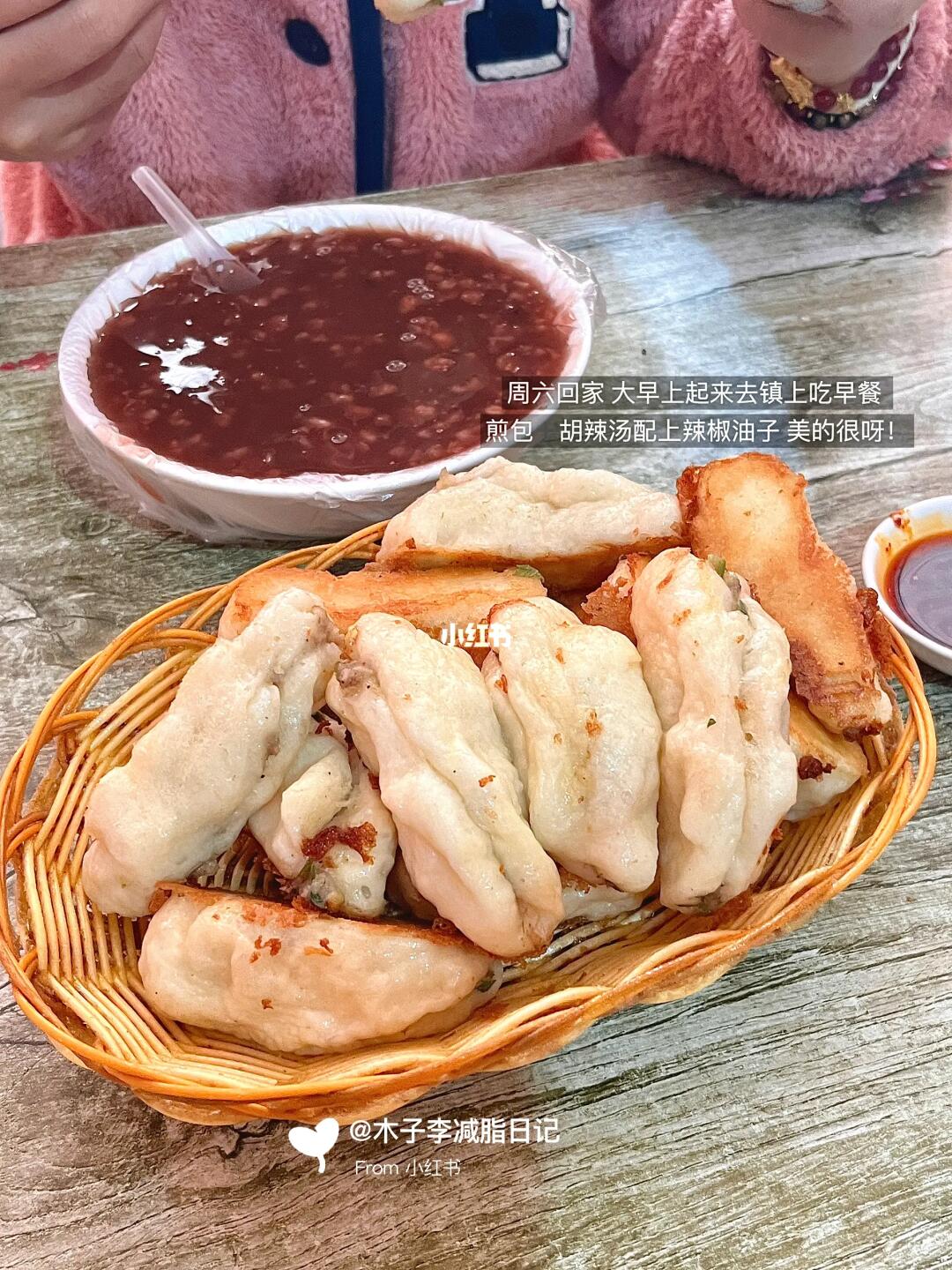 初始体重120斤 今日体重96斤 目标80斤 - 早:煎包➕胡辣汤 午:麻辣鱼粉 晚:红烧肉肉夹馍 加:黑芝麻贝果 运动:🈚 - 呜呜呜呜周六回家吃的全是碳水局,我不胖谁胖呀!真的是嘎嘎炫呀!