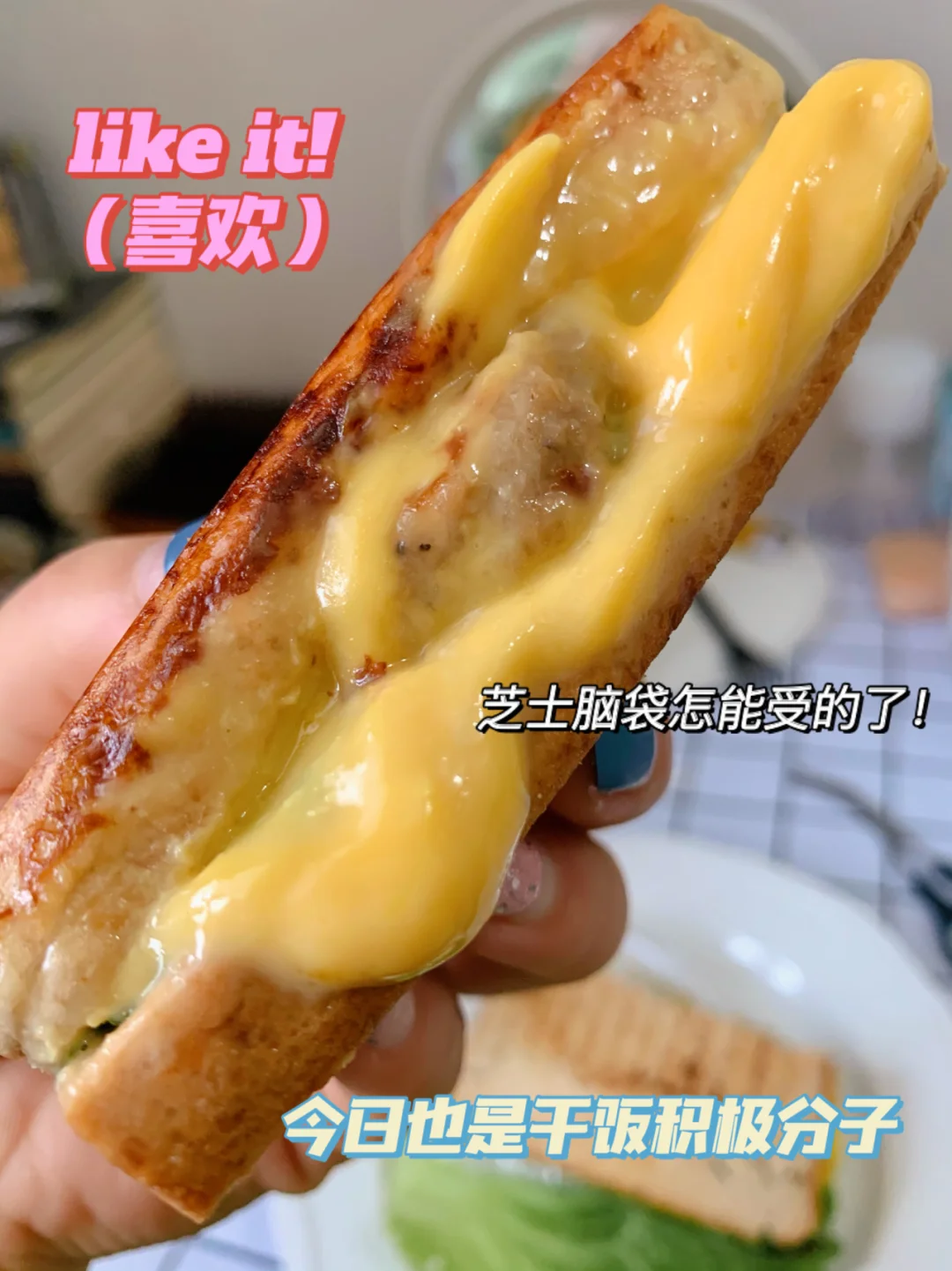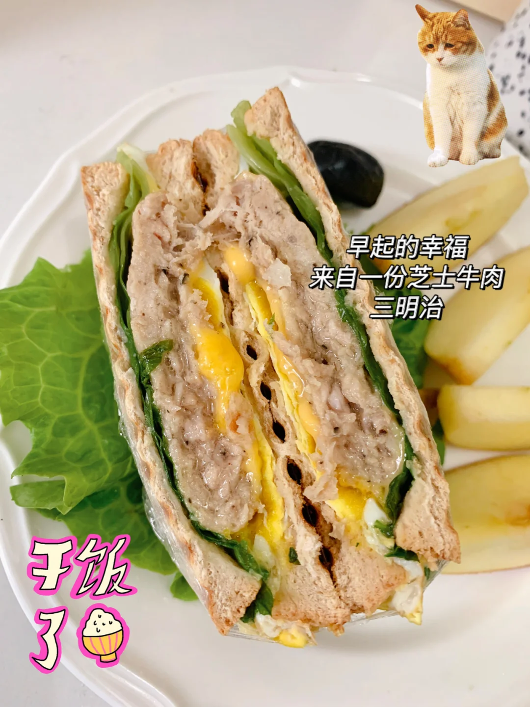 🍳早餐:芝士牛肉饼三明治➕黑咖啡➕芝麻丸➕苹果🍎