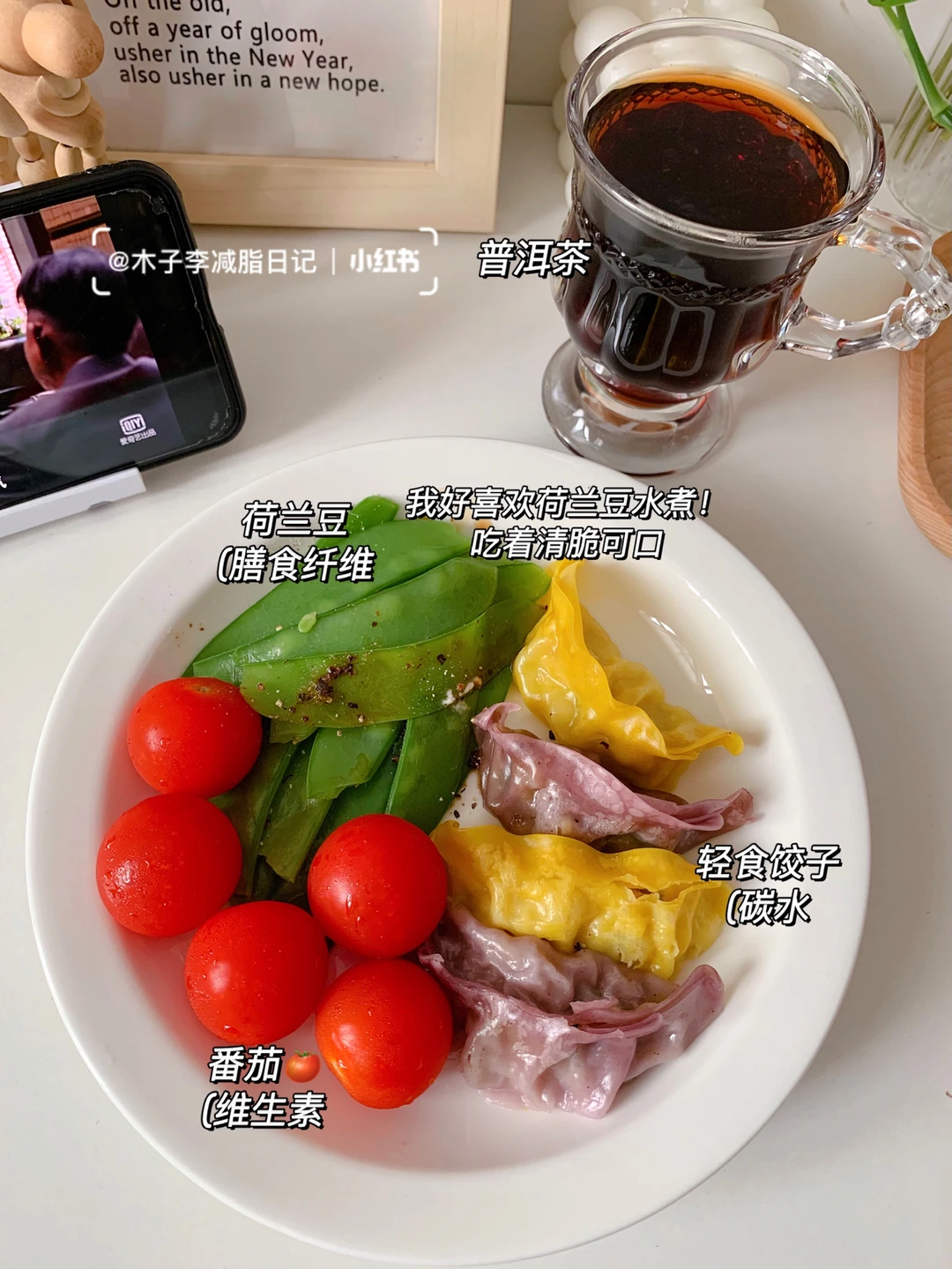 🥙午餐:饺子➕番茄➕荷兰豆➕普洱茶