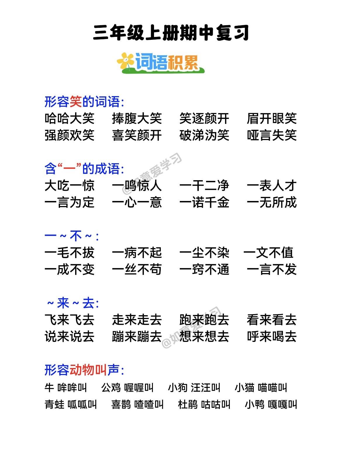 还有两天闺女就期中考试了,整理的《词语积累》复习用。还没有期中考的也截...