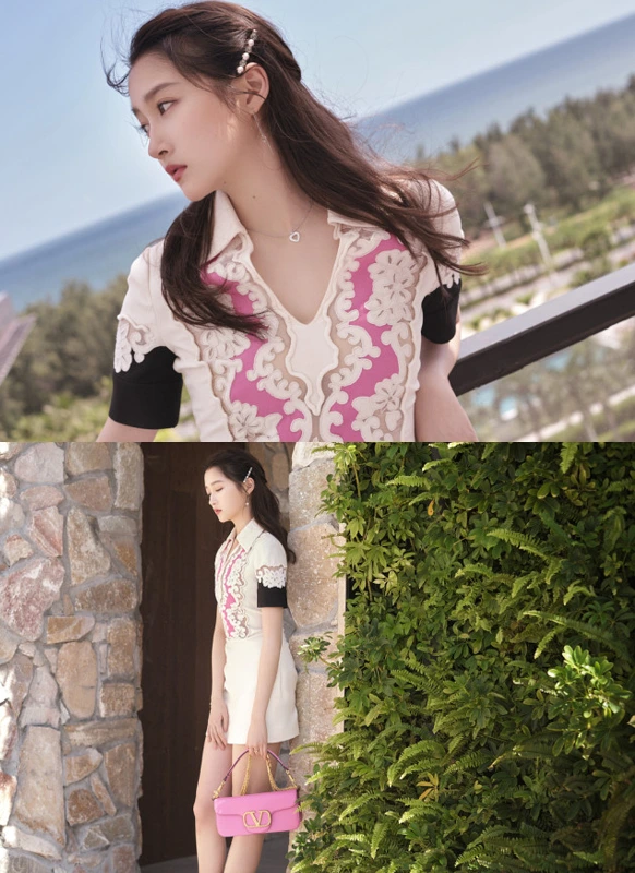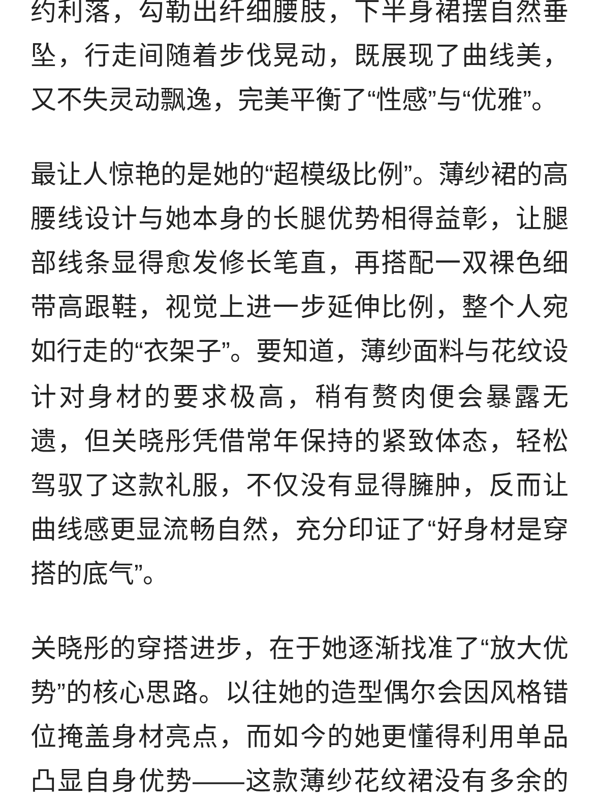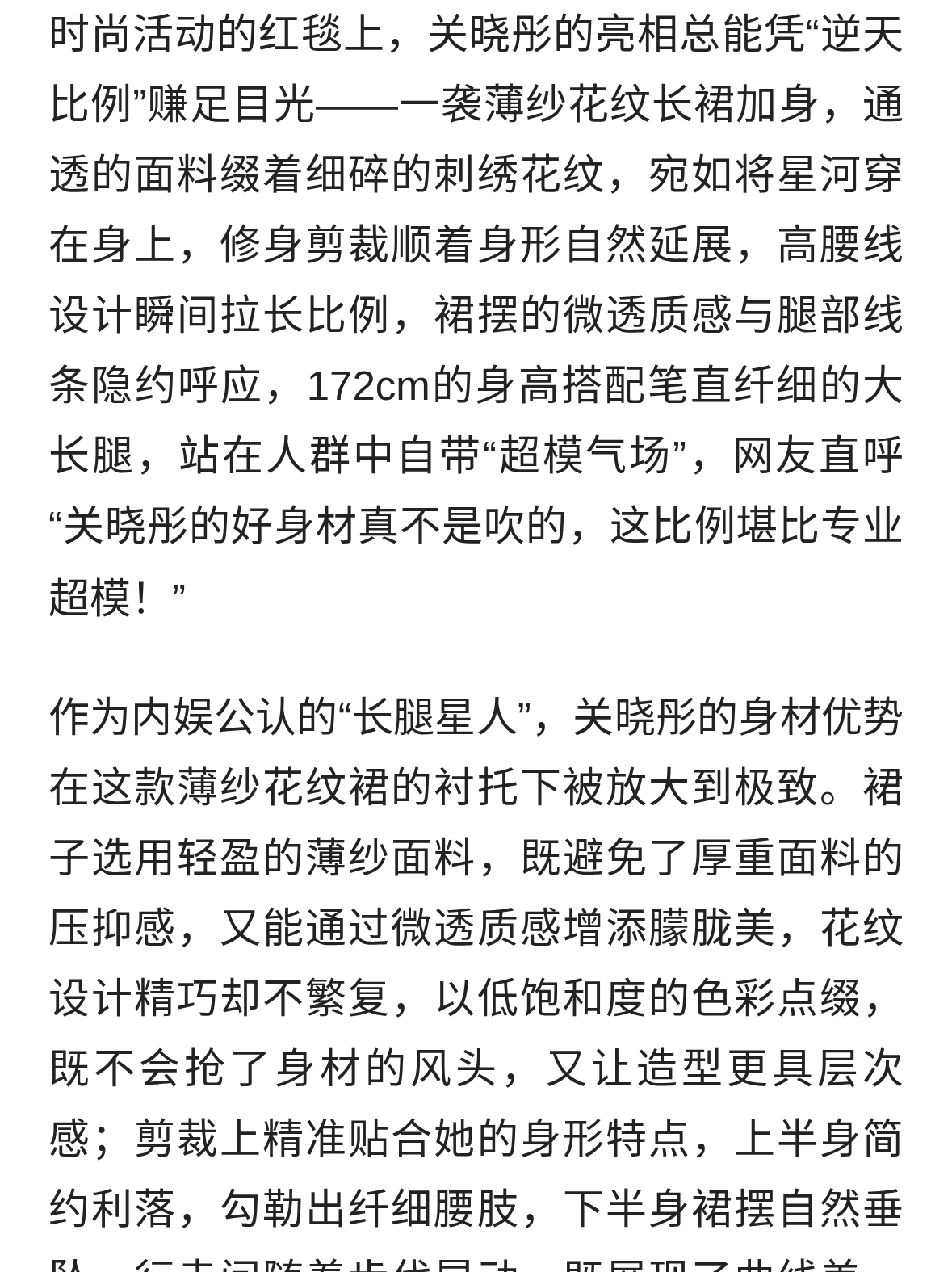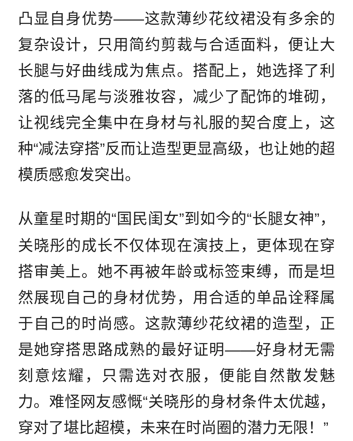 关晓彤的“大长腿”挺出名,穿薄纱花纹裙显曲线,好身材堪比超模