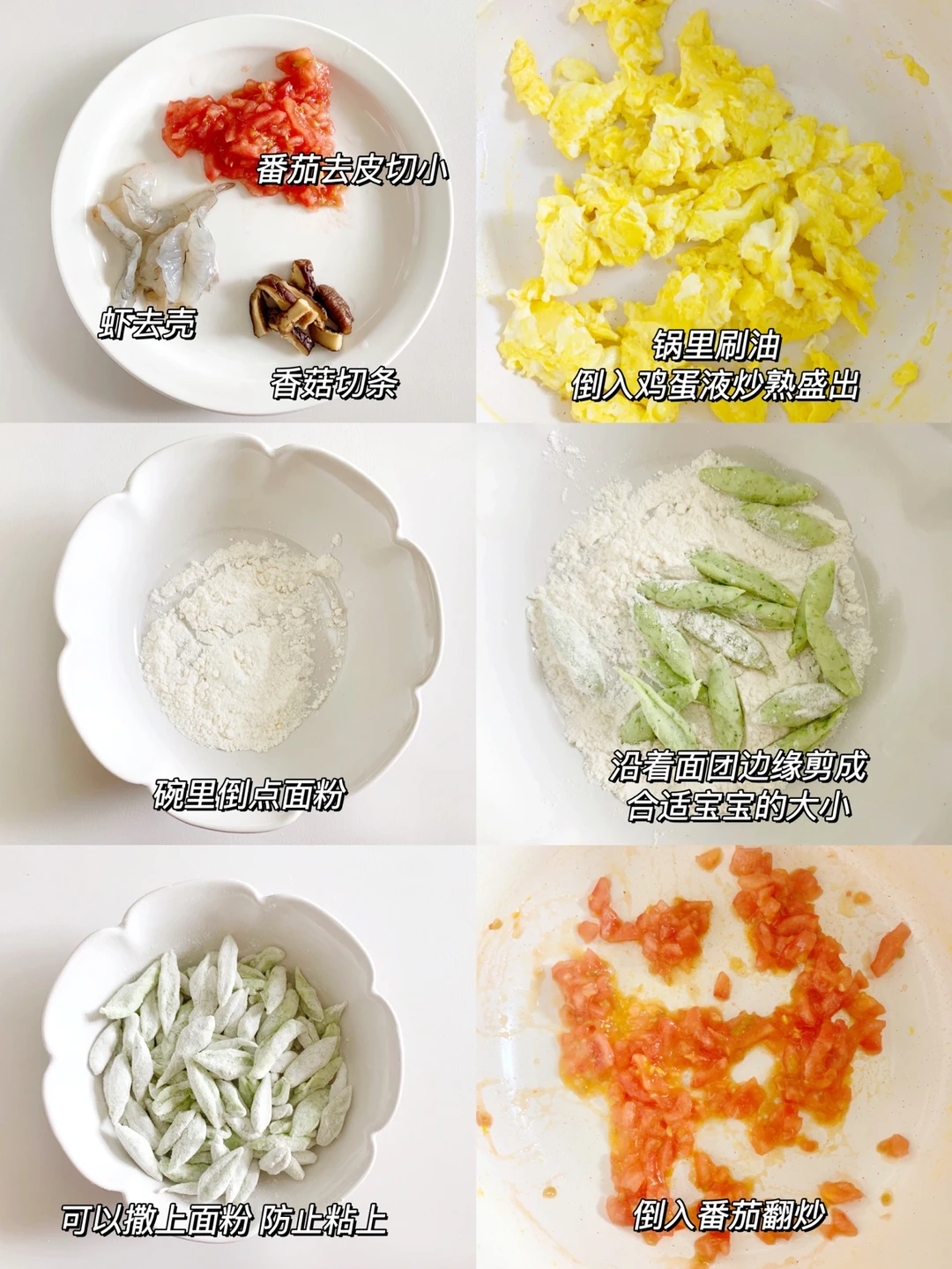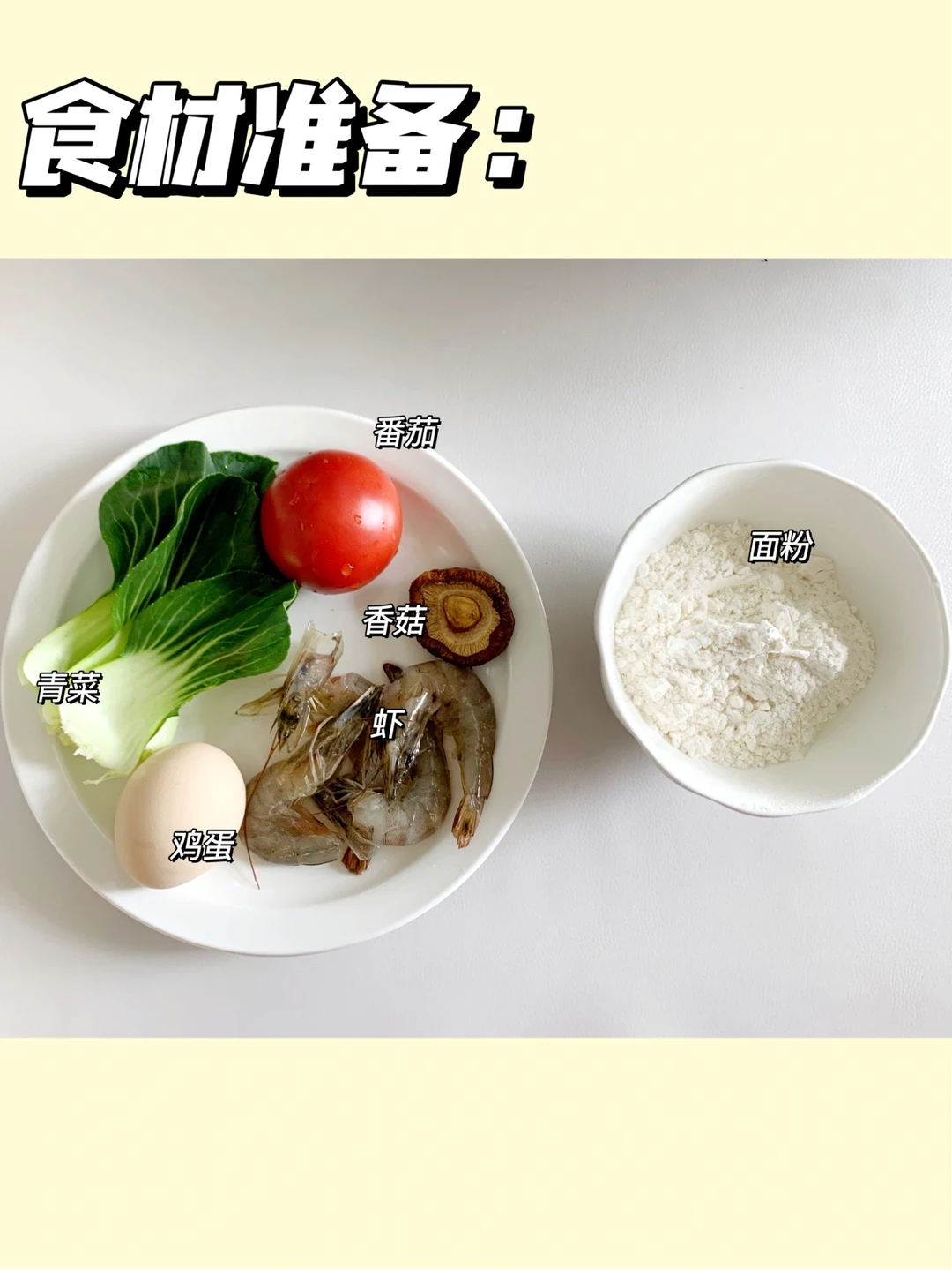 1⃣️番茄去皮切小,香菇切条,虾去壳去虾线