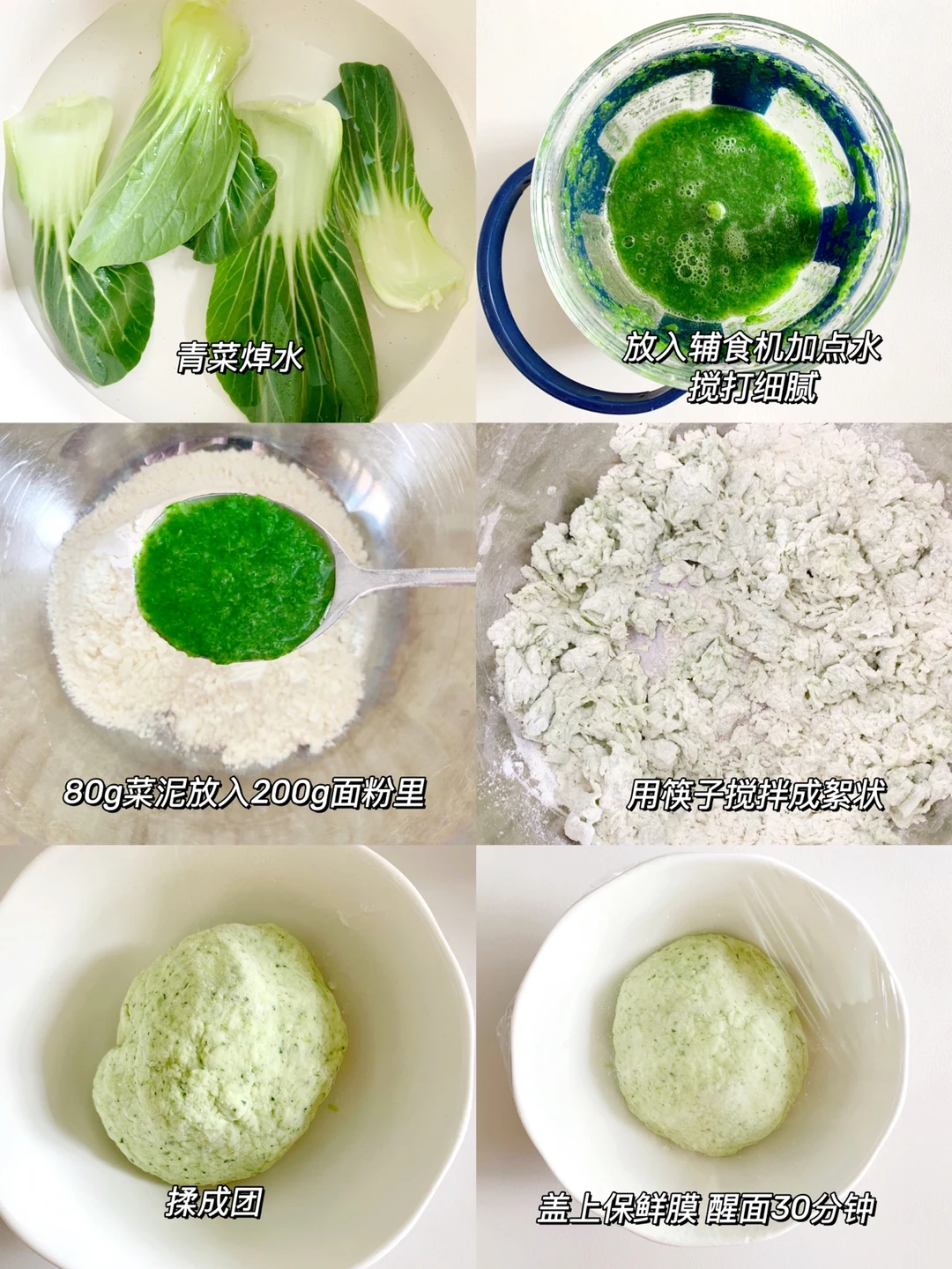 1⃣️菜焯水,切小放入辅食机加入少许水搅打细腻