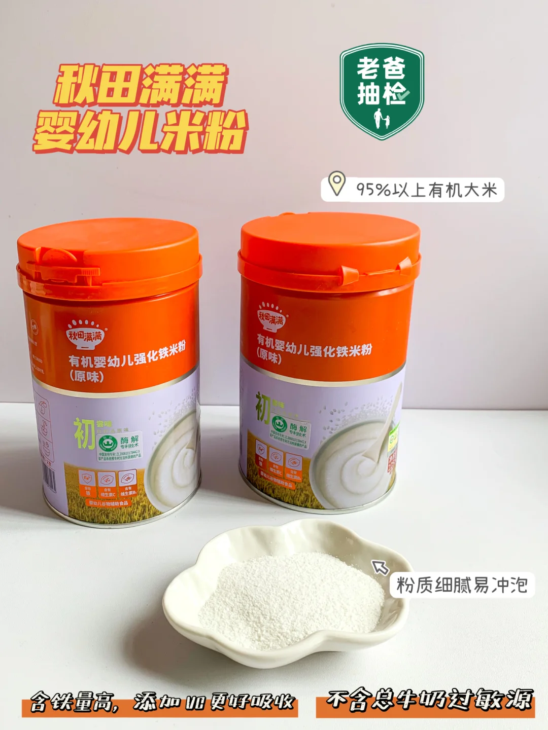 我用的是秋田满满初阶有机婴幼儿强化铁米粉,铁含量高,满足宝宝日常铁的含量需求,合适做为宝宝第一口米粉,而且通过老爸抽检,配料表干净,粉质细腻,容易冲泡,不会起坨。