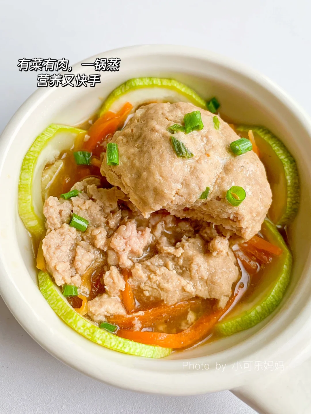 今天又来分享好吃不上火的蒸菜,宝宝版狮子头,鲜嫩多汁,有菜有肉,营养又好吃,做法也很简单,快给宝宝安排吧 - 🌟食材 肉沫 西葫芦 胡萝卜 . 🌟做法 1⃣️肉沫里➕葱花➕淀粉➕少许酱油➕辅食油,拌均匀整理成丸子 2⃣️西葫芦切片加辅食油抓拌均匀平铺在碗里,加入胡萝卜丝,放上丸子,上锅蒸15分钟 ✅食材大小根据宝宝咀嚼能力调整,简单又美味