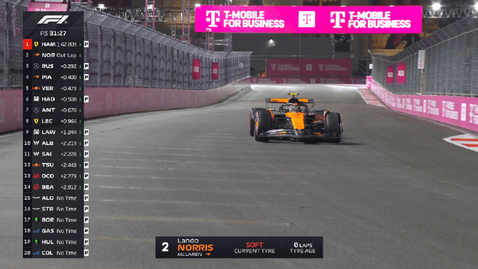 随后,队友兰多-诺里斯的赛车疑似遭遇电子系统故障,同样也出现了车队接收不到遥测数据的情况。