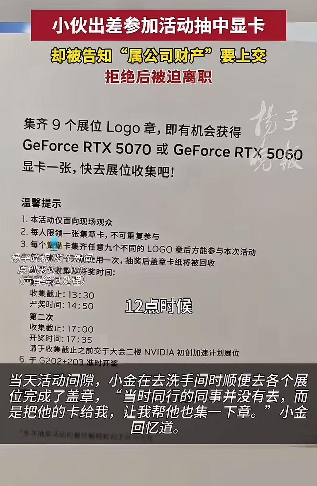 “这公司丢脸丢大了!”上海,小伙出差参加展会活动,运气爆棚抽中了一张价值3000元的显卡。可万万没想到,公司却告知他这“属于公司财产”,要求他上交。小伙自然是不同意,拒绝上交后竟被迫离职了。网友:离职就对了,这种离了一张卡都活不起的公司,干着没前途! 小金是某公司的实习生,8月底刚入职。11月14日,他受公司委派,前往苏州参加一场由英伟达主办的路演活动。 活动当天,主办方为现场观众设置了集章抽奖活动。小金趁着活动间隙去洗手间的时候,顺便到各个展位完成了盖章。同行的同事没去集章,把自己的集章卡交给小金,让他帮忙盖章。 令人意想不到的是,小金运气好到爆,竟然抽中了一张价值约3000元的5060显卡,而同事却没中奖。 这可是小金人生中中的第一个大奖,他当时别提多高兴了。然而,当天晚上,同事就给小金发消息还打电话说:“财务那边知道你中奖的事儿了。你是代表公司去参加活动的,出行费用都是公司承担的,这显卡理应归公司所有,下周一你把它带到公司来。” 小金觉得这要求简直荒谬至极。他认为自己出差已经圆满完成了公司交代的任务,这个抽奖活动是主办方给现场幸运观众的福利。要是自己没去集章,连抽奖资格都没有,怎么能把中奖的显卡上交呢?于是,他果断拒绝了。 谁能想到,公司高层都介入此事,还对小金进行了两次约谈。 小金态度坚决,他表示:“要是公司安排我出差就是专门去抽奖的,那我抽中了肯定上交。但抽奖又不是我出差的任务。照公司这逻辑,我出差途中去彩票店买张彩票,中了奖难道也要上交,就因为路费是公司出的?” 领导被他说得无言以对。虽然最后公司没有强行没收显卡,但在最后一次沟通时,公司人事找小金谈话,委婉地表示事情闹得有点僵,大家以后抬头不见低头见的,建议他另谋高就。 小金心一横,选择了辞职。他觉得这样没格局的公司,实在不值得自己继续待下去。可他心里这口气实在咽不下,就把这件事发到了网上。 此事引发热议, 有网友说,现在公司都这么不体面了吗?我20年前差不多的情况,抽中一块卡西欧手表,那时候价格3000多吧,公司都很高兴,只叫我请客吃饭,庆祝一下,后来准备付款,结果公司结账了,说就是找个理由聚个餐,都放松放松,沾个喜气,那时候公司虽小,但是很舒服! 也有网友说, 我之前代表公司参加乙方的年会 ,搞了一个大电视 05年 领导还开车帮我拖回家 后面卖了6000! 还有网友说,说白了就是同事眼红!他看你没给他好处,就跟公司领导说了。!没想到领导也没格局,就这点小钱看的那么重!垃圾公司谁会去打工? 公司要求员工上交中奖显卡,看似是维护自身利益,认为员工出差费用由公司承担,抽奖所得应归公司。但这种做法显得格局太小。 公司的核心业务和发展应依靠合理的战略、优质的产品和高效的运营,而不是盯着一张价值3000元的显卡。 如此处理方式不仅让员工寒心,还可能在行业内和社会上造成负面影响,使公司形象受损,不利于吸引和留住优秀人才。 小伙拒绝上交显卡的做法合理且有原则。他明确区分了出差任务和抽奖活动,清楚认识到抽奖是个人凭借运气获得的额外奖励。 在面对公司不合理的要求时,他敢于坚持自己的立场,维护自身权益。虽然因此离职,但他的做法值得肯定,毕竟在这样没有格局的公司工作,未来发展可能也会受到诸多限制。 这件事情也提醒其他公司,在管理过程中要注重员工感受,制定合理的制度和规则,不能为了一点小利益而损害员工的积极性和忠诚度。 同时也鼓励员工在面对不合理要求时,要勇敢地维护自己的合法权益,通过合理的方式表达自己的观点!