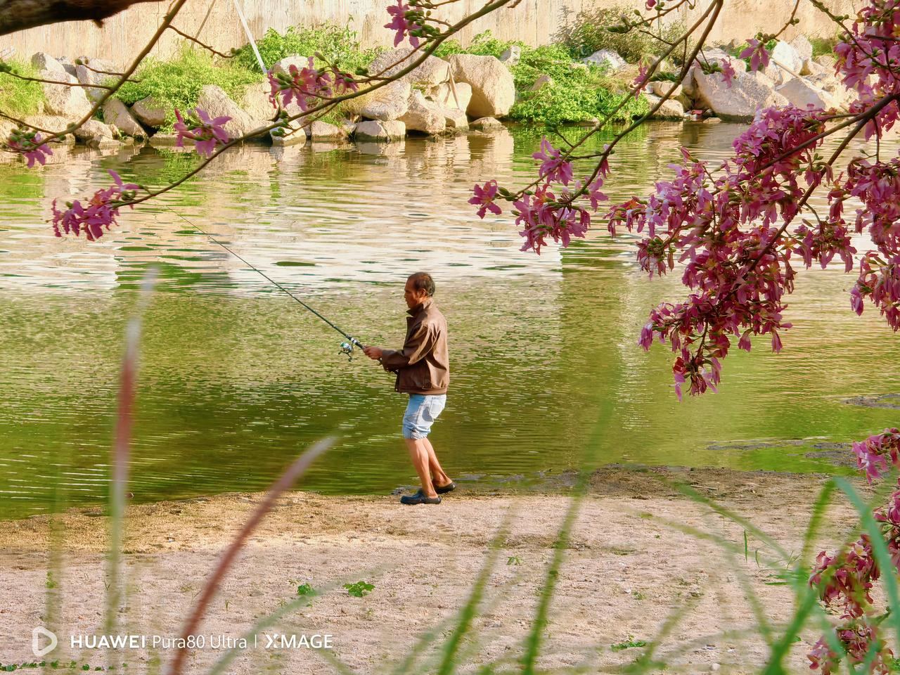 华为Pura80ultra的十倍定焦出片了,观澜河的钓鱼人,在木棉花下钓鱼的大哥,是真的懂浪漫。华为Pura80ultra XMAGE 影像 电影 个性色卡华为Pura80长焦将有新突破 华为发布XMAGE共创计划