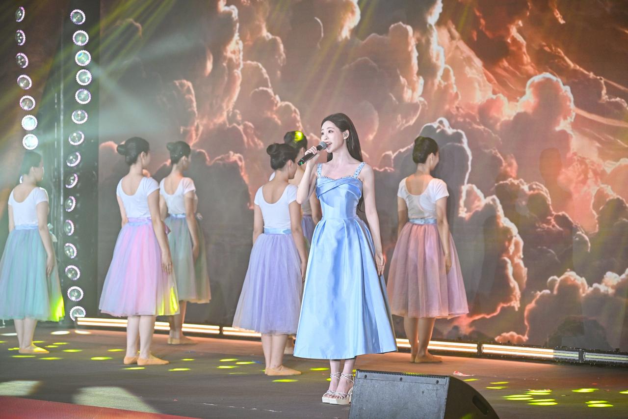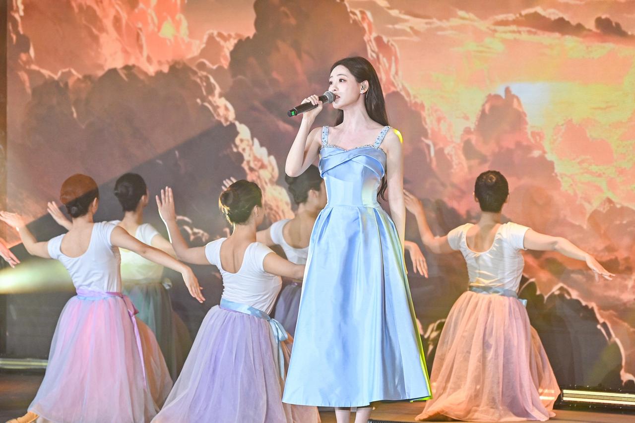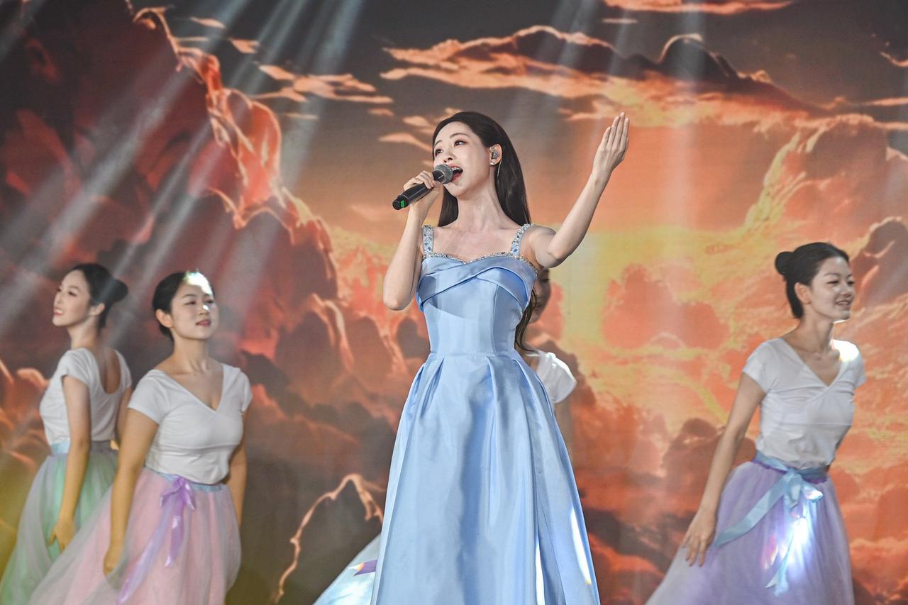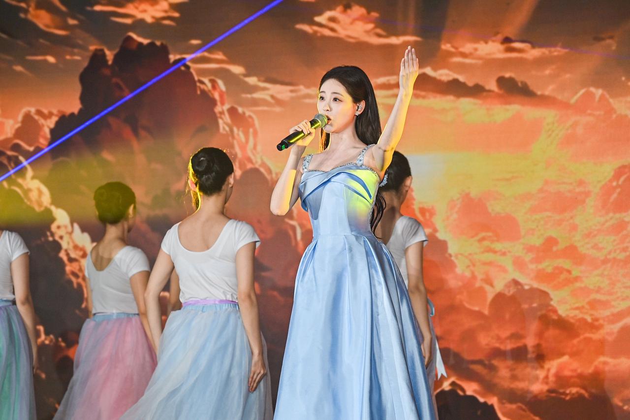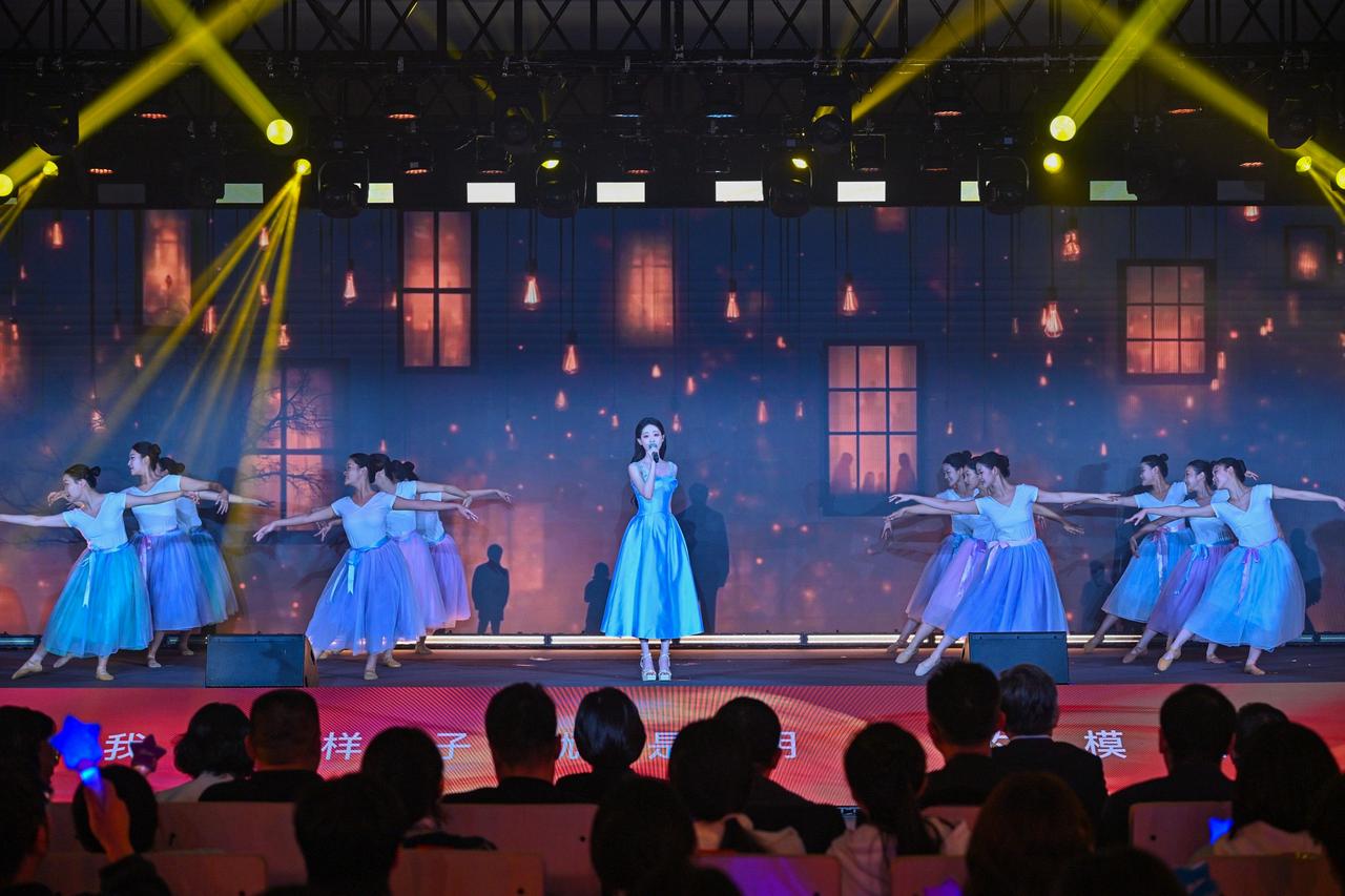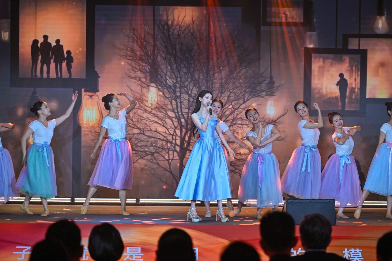 旋律激荡,青春飞扬! 在演员祝绪丹的领唱下,一曲《有我》引发全场共鸣,青年学子自发起立,挥动手中闪烁的蓝色星光。这不仅是动人的表演,更是一次青春的集体宣誓:强国有我,誓言铿锵!