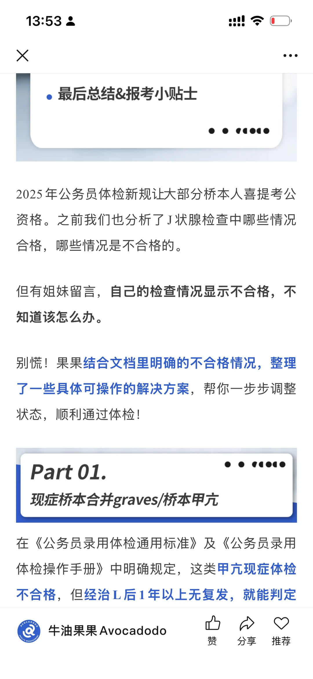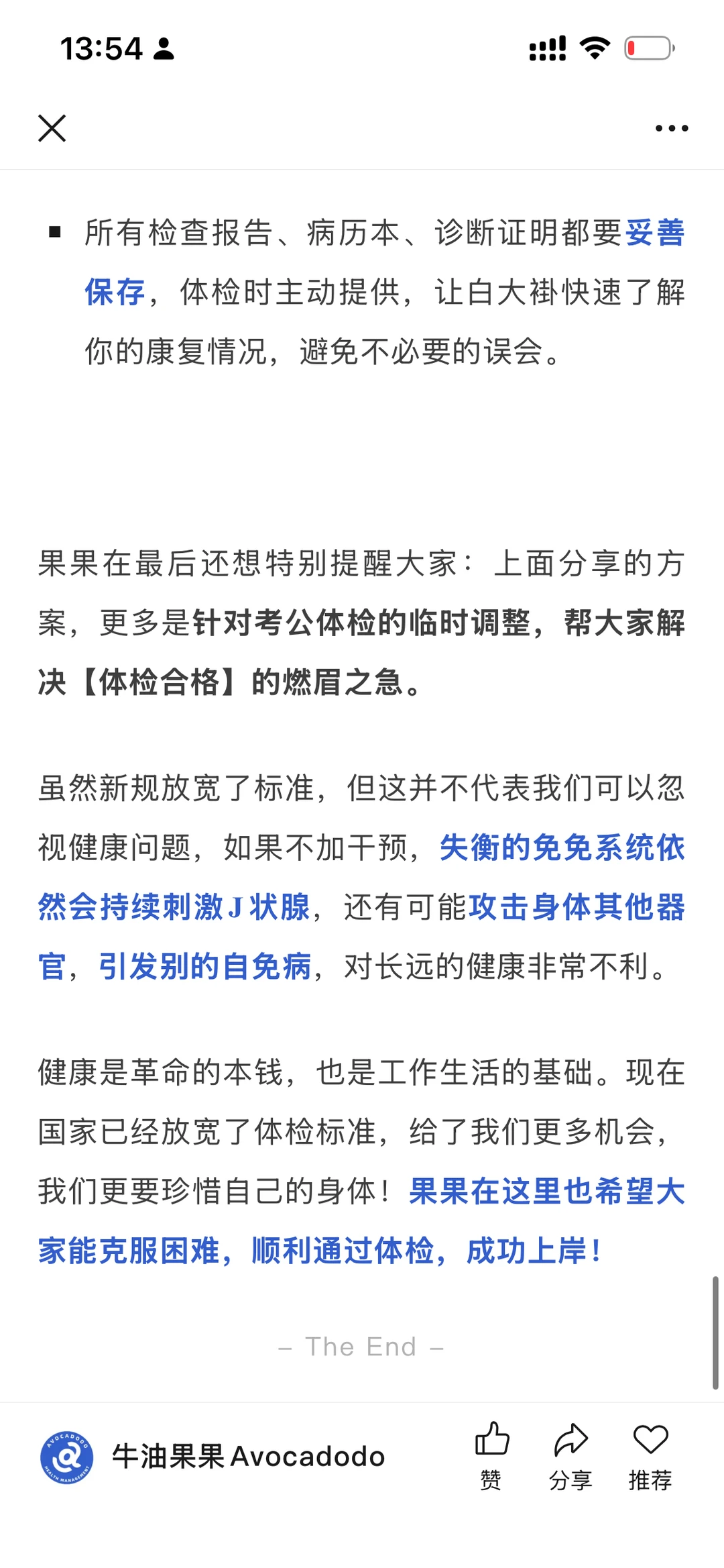 虽说目前单纯桥本考公体检可以通过了,但是还有一部分姐妹给果果留言,说自己的“小蝴蝶”检查不过关。[叹气R][叹气R]