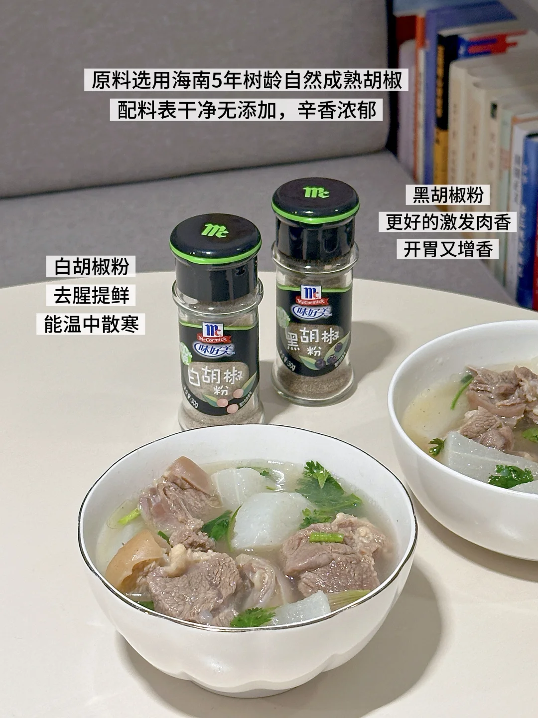 ➤ **白胡椒**:味道相对辛辣一些,香气相对内敛,重在“暖☀️胃驱🧊寒”。如果你喝这碗汤主要是为了暖身,或者脾胃虚寒,选白胡椒准没错。