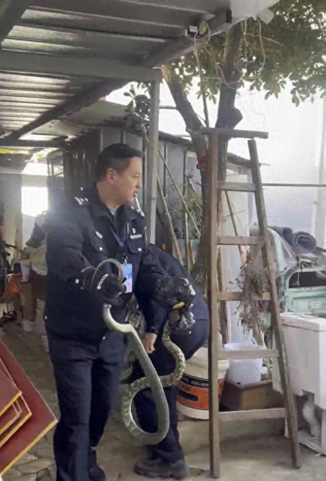 大皖新闻记者11月22日从宣城警方了解到,被抓获的大蛇是王锦蛇,长约1.6米,民警将抓获的蛇移交给野生动物救助站,蛇体表并无外伤,已带到野外进行放生。