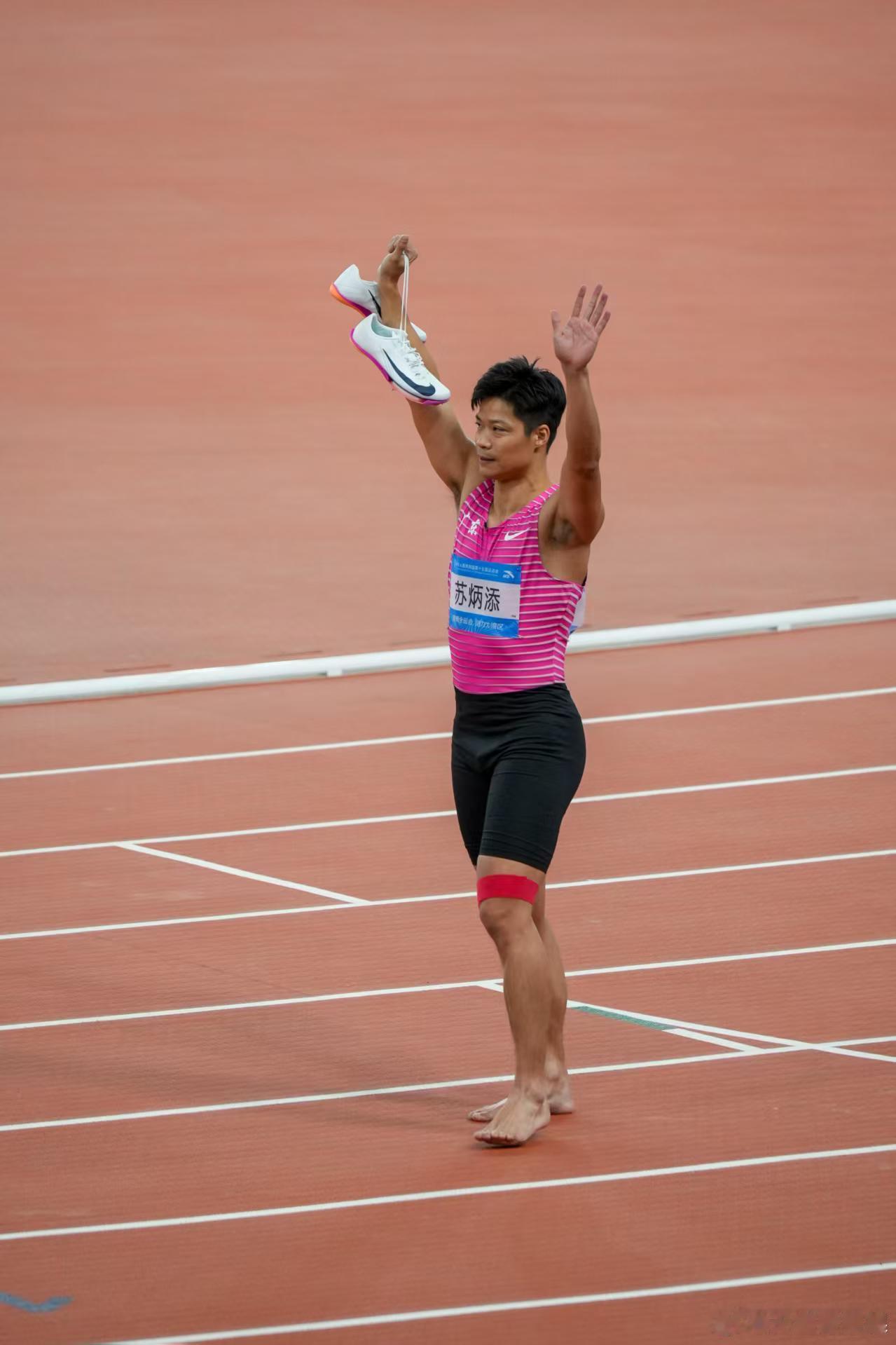 红色跑道上的最后一棒交接,不是终点线,而是新赛道的发令枪。全运会男子4×100米接力决赛,看着苏炳添在熟悉的弯道加速、交棒,忽然懂了什么叫“把热爱的事业落足料,时光终会给出答案”。从2018年以9秒91打破亚洲纪录,到34岁依然站在家乡赛场的“最后一舞”,苏炳添用17年职业生涯写就“足料传奇”——那些在训练馆磨穿的钉鞋,深夜复盘的技术视频,30岁改起跑脚的破釜沉舟,都是刻在跑道上的注脚。当他笑着说:“够喉了”,我们却看见一个运动员最动人的清醒:巅峰时不恋栈,转身时更热烈。苏炳添在接受采访时说:“把跑道留给更多青少年”,这是他给中国短跑的交接棒。点评后辈时眼里的光,说中国短跑百花齐放时的笃定,让我们想起他曾说:“体育像打游戏过关,失败是攒经验值”。如今他要去解锁新关卡,用自己的经验,帮更多年轻人跑得更快。这不是谢幕,是换了种方式继续。就像他从未离开田径场,我们每个人也能在自己的赛道上——为热爱落足料,为梦想just do it。苏炳添,下一程,继续风速前进!