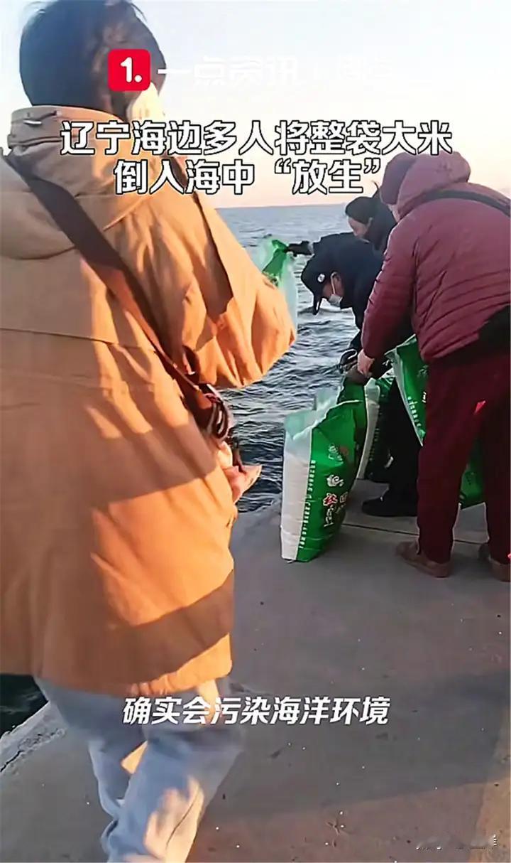 老人往海里放生大米?官方回应不属污染物,背后真相更该警惕! 最近辽宁葫芦岛的“放生名场面”刷爆全网:几位老人扛着好几袋大米往海里倒,一边倒还一边念念有词,旁边人直言“在海边,刚放生”。这波操作让网友看傻了眼,官方回应称大米不属污染物,但这事儿真的就没毛病吗? 先说说最让人揪心的——浪费粮食。每一粒大米都要经过农民春种秋收、层层加工,从田埂到餐桌全是辛苦。就这么白花花倒进海里,不仅对不起面朝黄土背朝天的劳动者,更违背了“一粥一饭当思来处不易”的传统美德,难怪网友吐槽“袁隆平爷爷看了都得生气”。更讽刺的是,这些大米要是捐给公益站、送给有需要的人,才是真善举,而非用自我感动式的“放生”糟蹋粮食。 再看大家担心的生态隐患。官方说大米不属污染物,但不代表没危害!大米在海水中会发酵分解,过程中会耗光大量氧气,导致局部海域缺氧,鱼儿可能窒息死亡;分解产生的氨氮还会污染水质,甚至引发有害藻类繁殖,破坏海洋食物链。更别提鱼类误食膨胀的大米,可能难以消化被撑死,看似无害的举动,实则给海洋生态埋了雷。 其实这事儿的核心,是“放生”变了味。原本放生是敬畏生命、守护生态的善意,可现在不少人把它当成了“积德作秀”,不管物种是否合适、环境是否允许,只顾着自己的仪式感。之前还有放生鳄雀鳝、巴西红耳龟的乱象,如今连大米都成了“放生对象”,本质是对放生理念的误解,更是缺乏科学常识的表现。当地佛教协会也早就澄清,这根本不是佛教理念,纯粹是误导性的盲目行为。 善意从来不是随心所欲的“自我感动”,而是不伤害、有担当的选择。想行善,不如把粮食送给需要的人;想护生态,不如遵守科学放生规则,不引入外来物种、不破坏环境平衡。 你怎么看“放生大米”这种行为?要是你遇到这种情况会制止吗?欢迎在评论区吐槽你的看法,也一起聊聊真正的行善该是什么样子