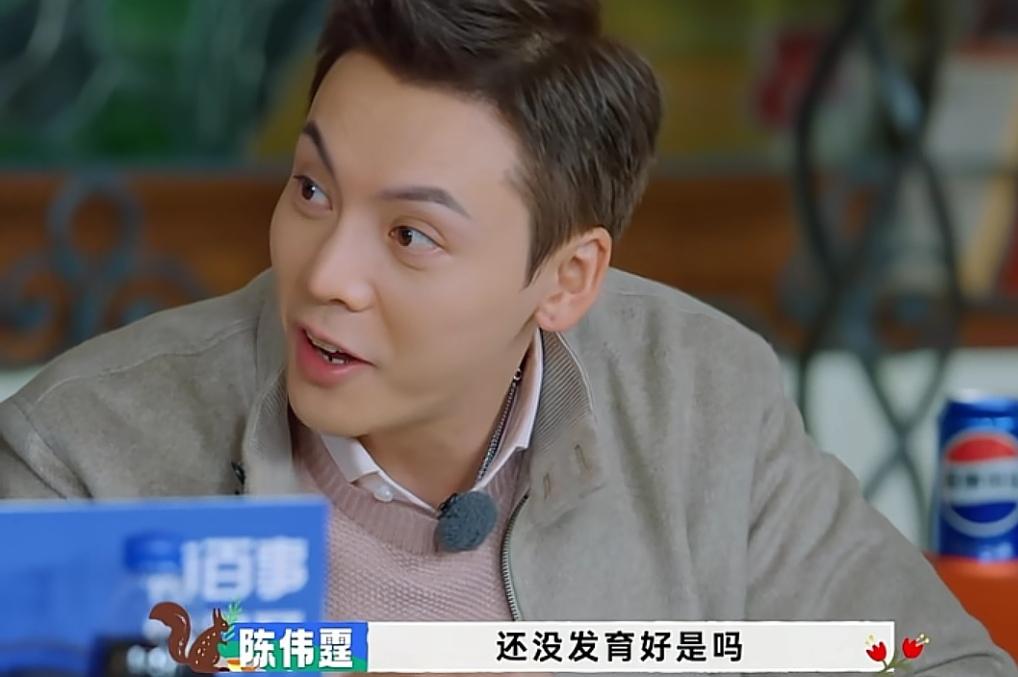 陈伟霆听贾冰讲话好像在做阅读理解,范丞丞说贾冰说的话到陈伟霆这里已经是两个意思了! 贾冰:“我今年体检,身体就跟小孩一样”,陈伟霆:“怎么了,还没发育好是吗”,范丞丞:“他从你那东北话里,到伟霆哥的脑子里,他得先过一遍普通话,再过粤语,已经是两个意思了” 陈伟霆是真听不懂贾冰的话,而且他还是很认真的问贾冰,真的太好笑了 谁跟陈伟霆交流,都得有语言障碍啊,陈伟霆也是太有梗了啊