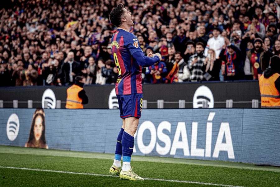 本赛季,莱万已经在西甲联赛中打进了8球。