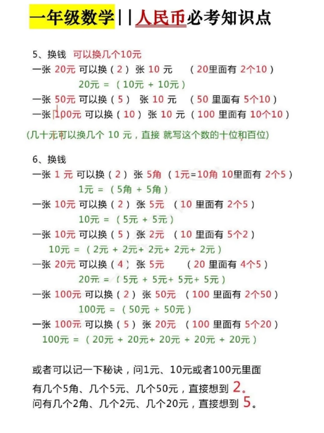 人民币必考知识点