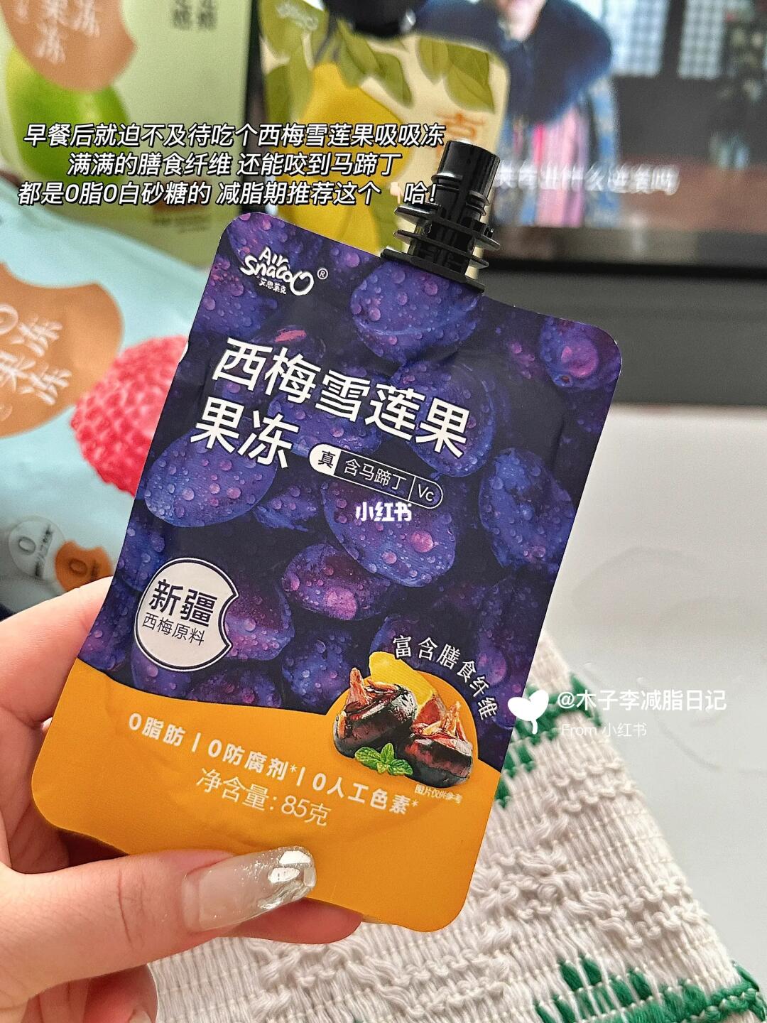 💭还有同款吸吸冻 西梅雪莲口味的 满满的膳食纤维呀~饭后来一包清爽解腻~里面还有马蹄丁,吸到嘴里还有脆脆的口感丰富哦 都是0脂0白砂糖哈 减脂期解馋很🉑!